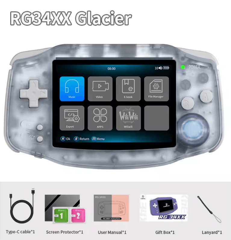 ANBERNIC RG34XX Retro Handheld Gaming Console 3 4 Inch Linux glacier