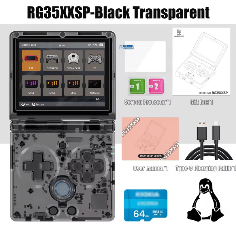 ANBERNIC RG35XXSP Retro Handheld Game Console With 3.5 Inch IPS Screen And 3300mAh Battery black 64g