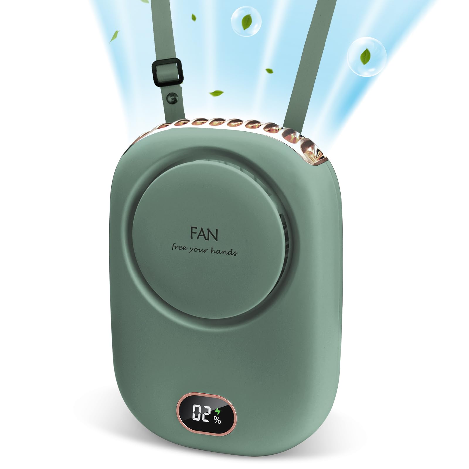 Vissko Portable Neck Fan, Bladeless Hanging Fan With Adjustable Lanyard, USB Rechargeable For Travel, Sports green