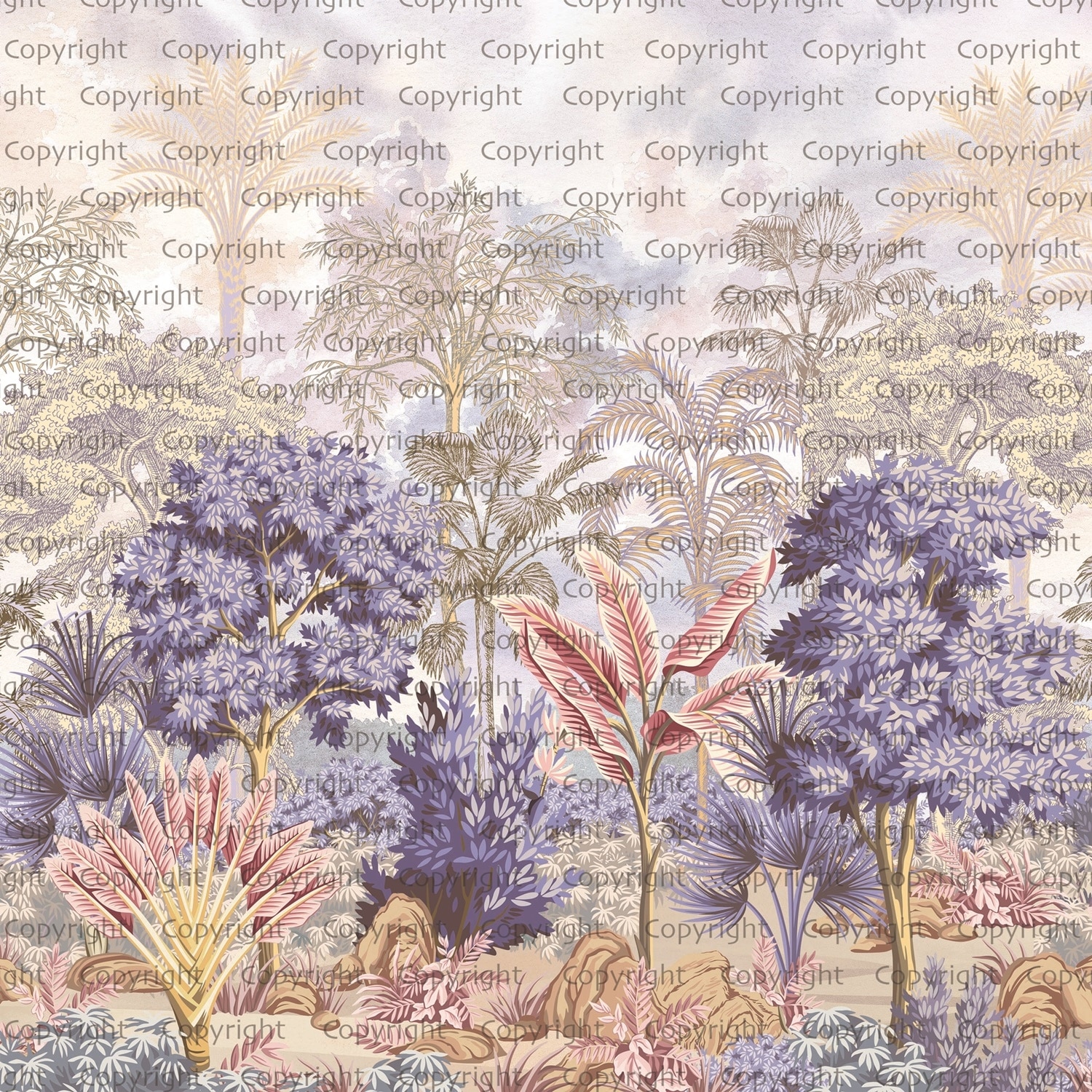 Pastel Tropical Forest Wallpaper Mural Purple Pink Foliage