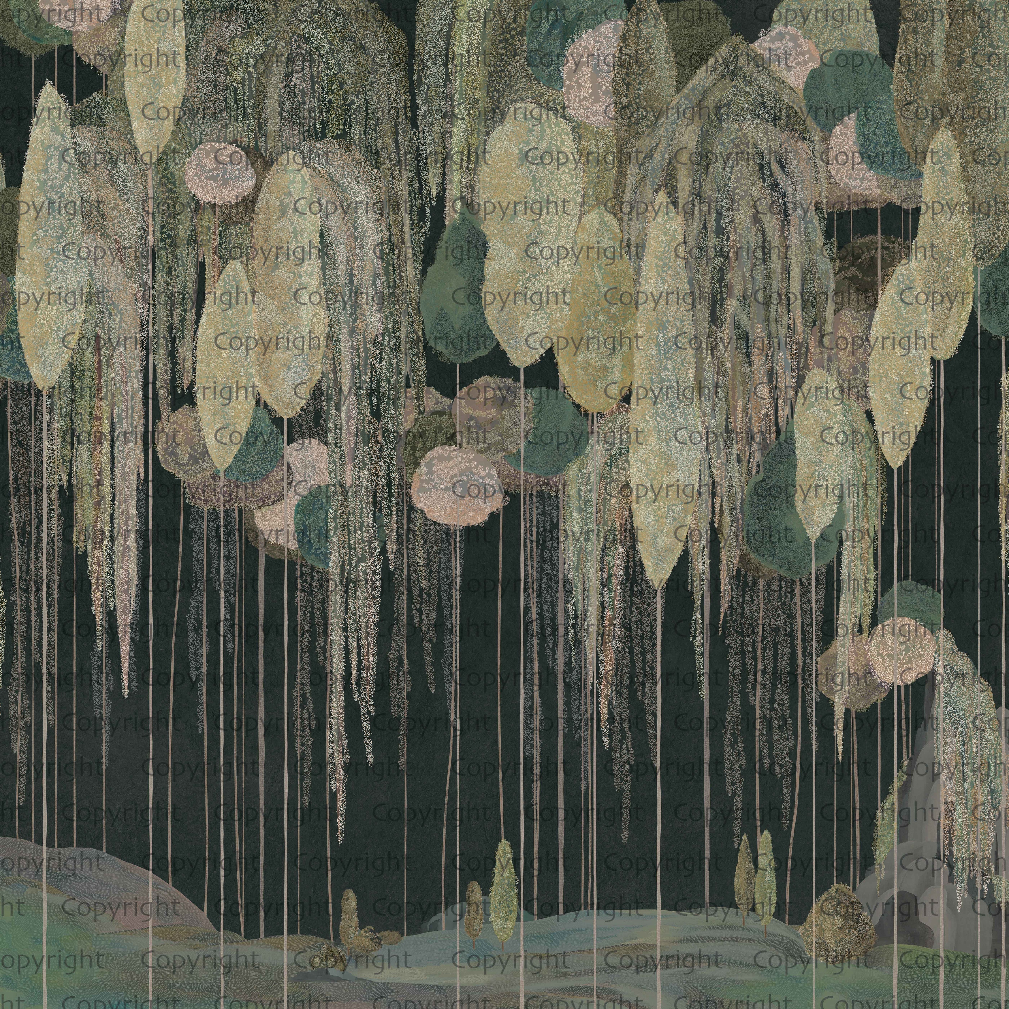 Enchanted Hanging Botanical Elements Wallpaper Mural