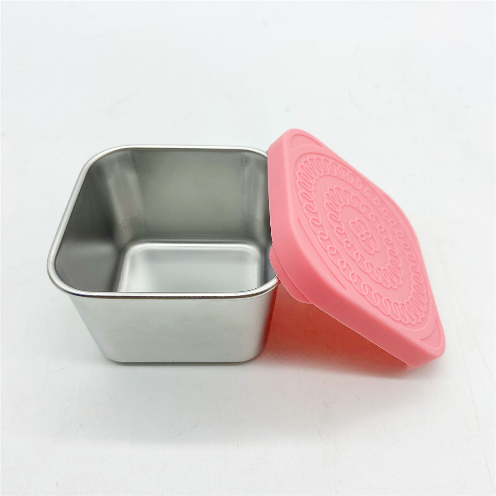 Square Stainless Steel Sauce Cup With Lid: Outdoor Portable Dipping Saucer For Kids Lunch Small Container Pink