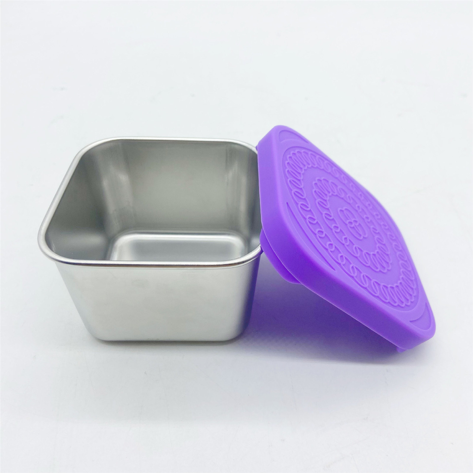 Square Stainless Steel Sauce Cup With Lid: Outdoor Portable Dipping Saucer For Kids Lunch Small Container Purple