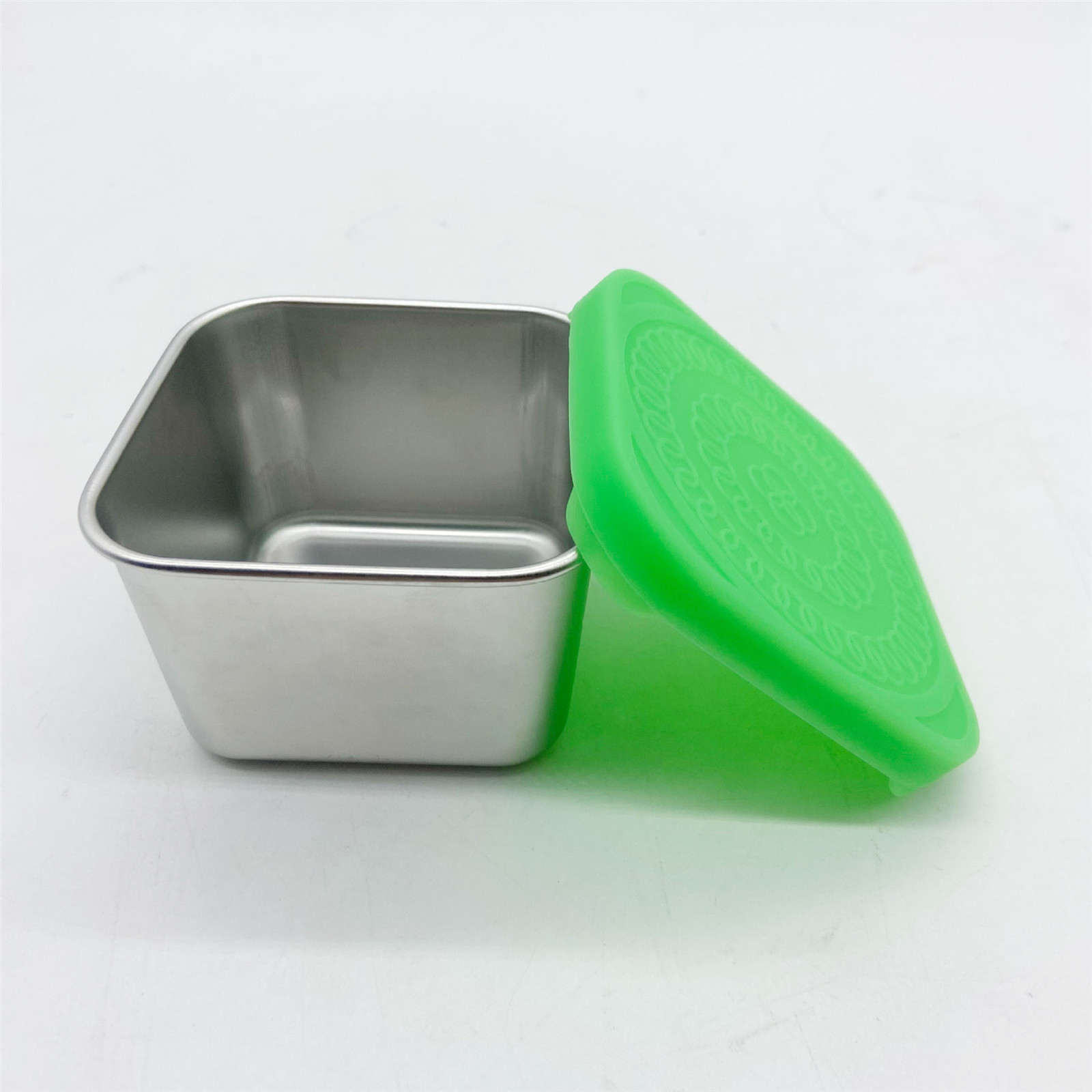 Square Stainless Steel Sauce Cup With Lid: Outdoor Portable Dipping Saucer For Kids Lunch Small Container Green