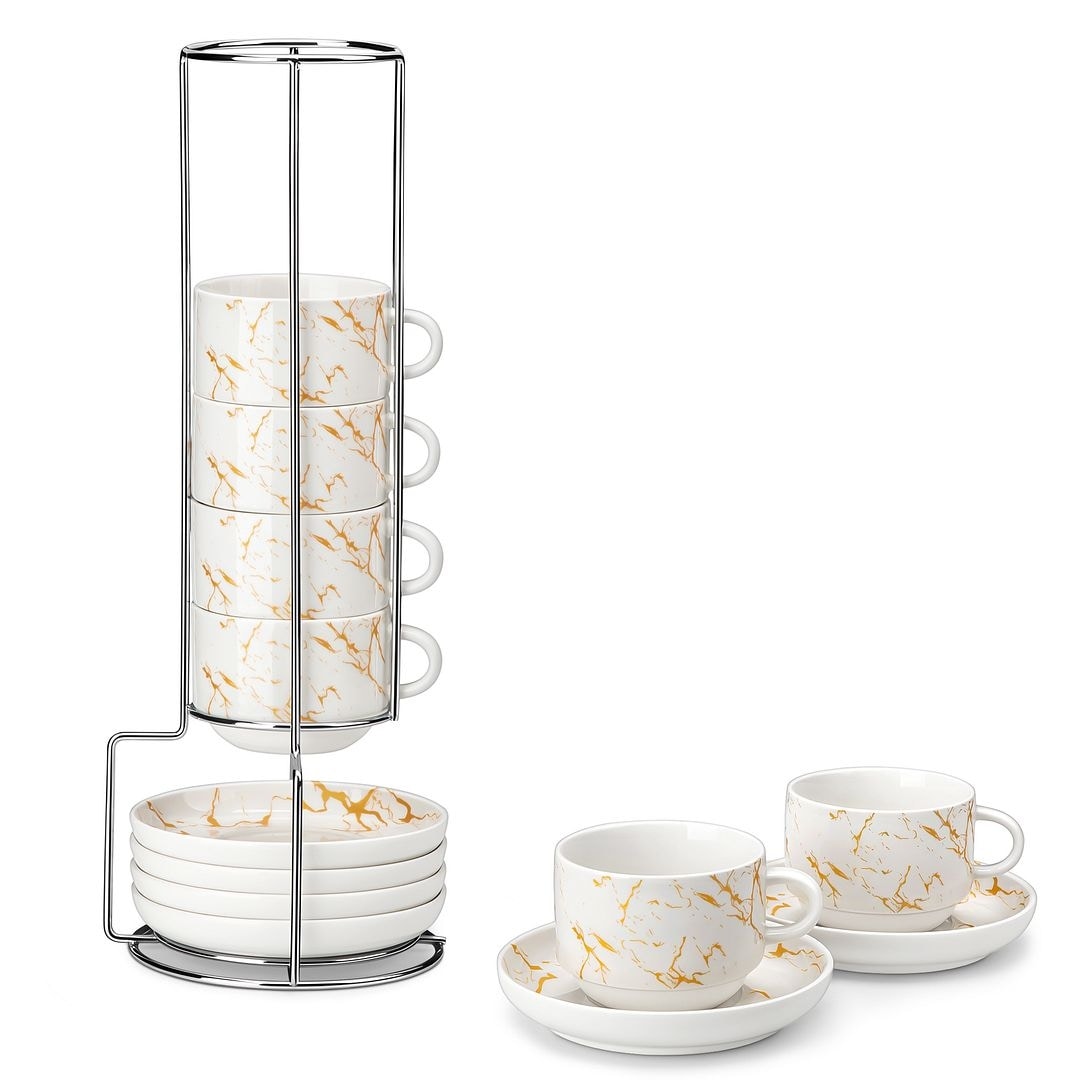 MALACASA Stackable 6-Piece Porcelain Espresso Cup Set for Coffee & Tea