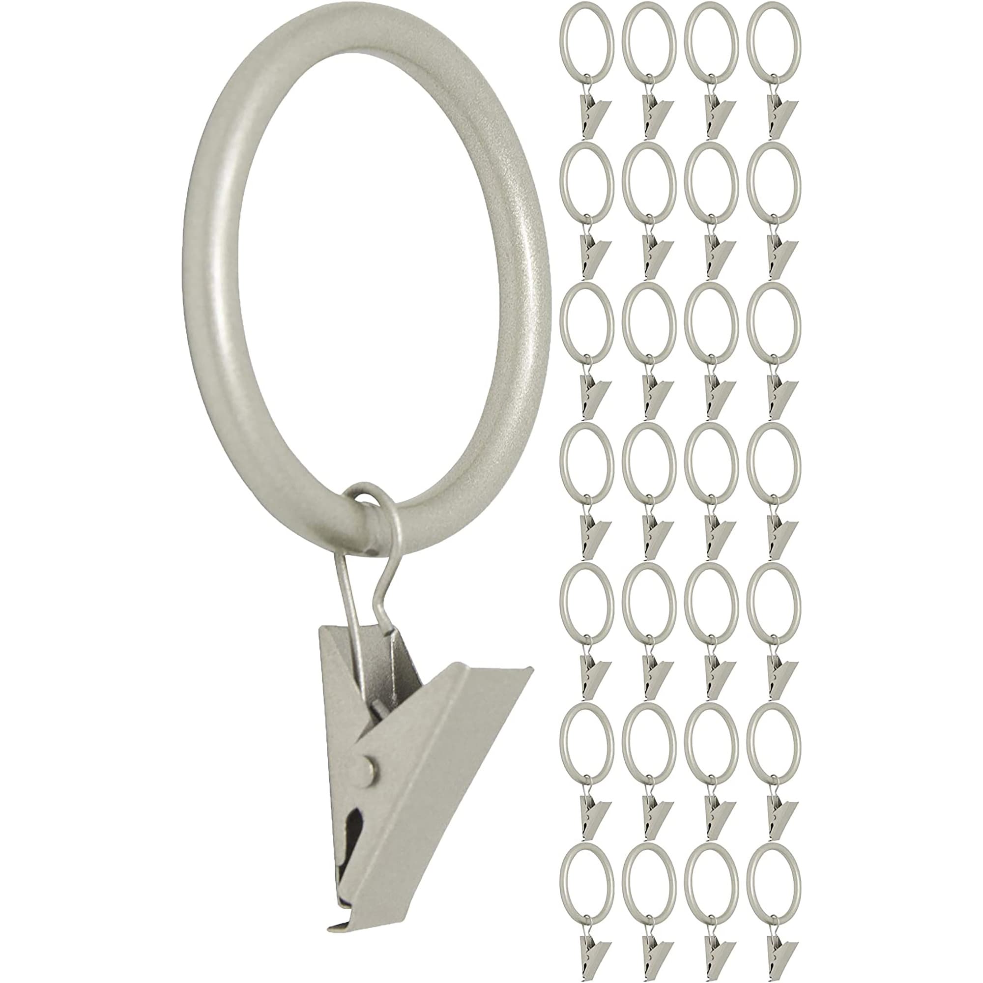 Meriville Drapery Curtain Rings with Clip - 1.5-Inch Inner Diameter