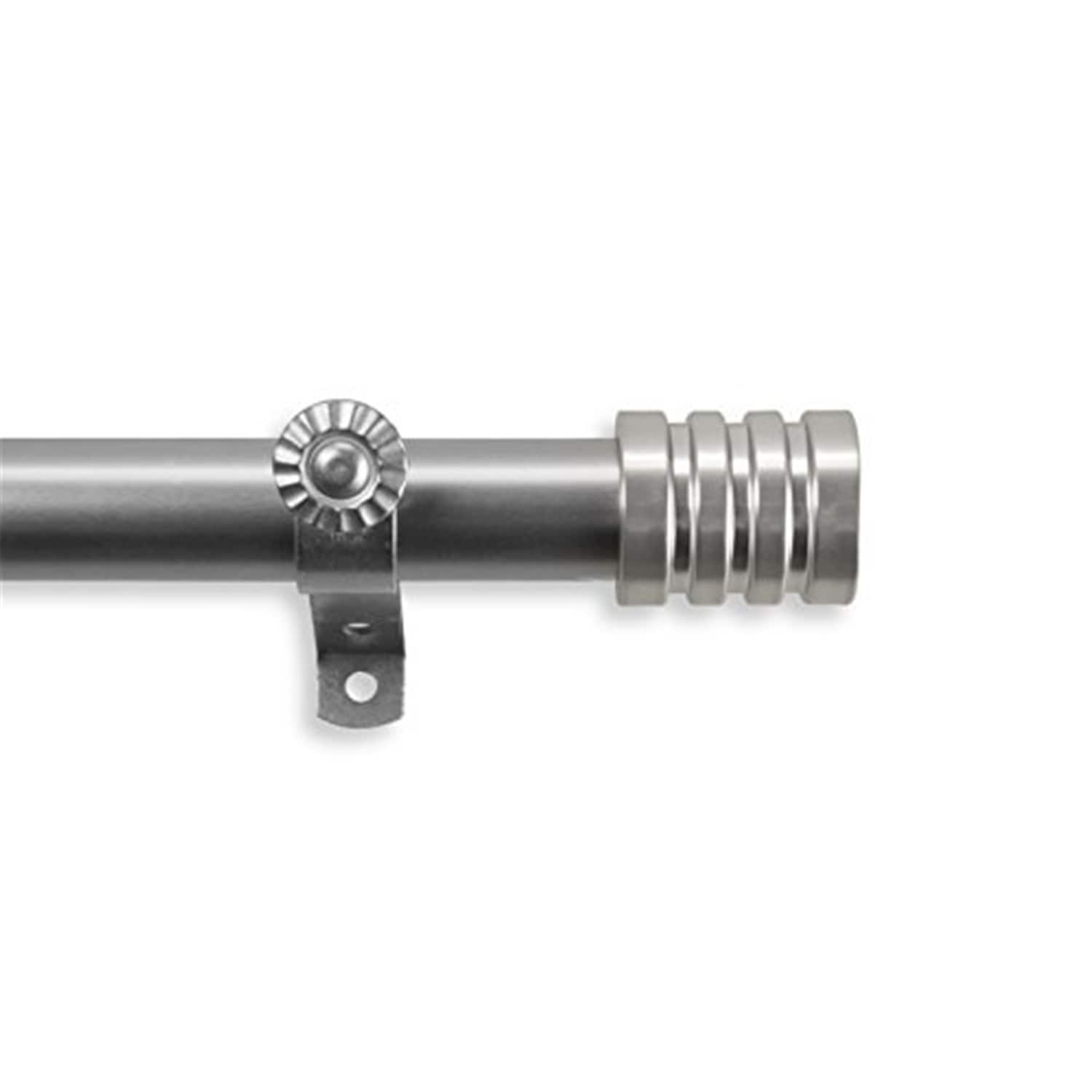 TOWN & COUNTRY LUXE Marbled Flute Single Indoor Curtain Rod and Finial Set Matte Silver 36"-72"