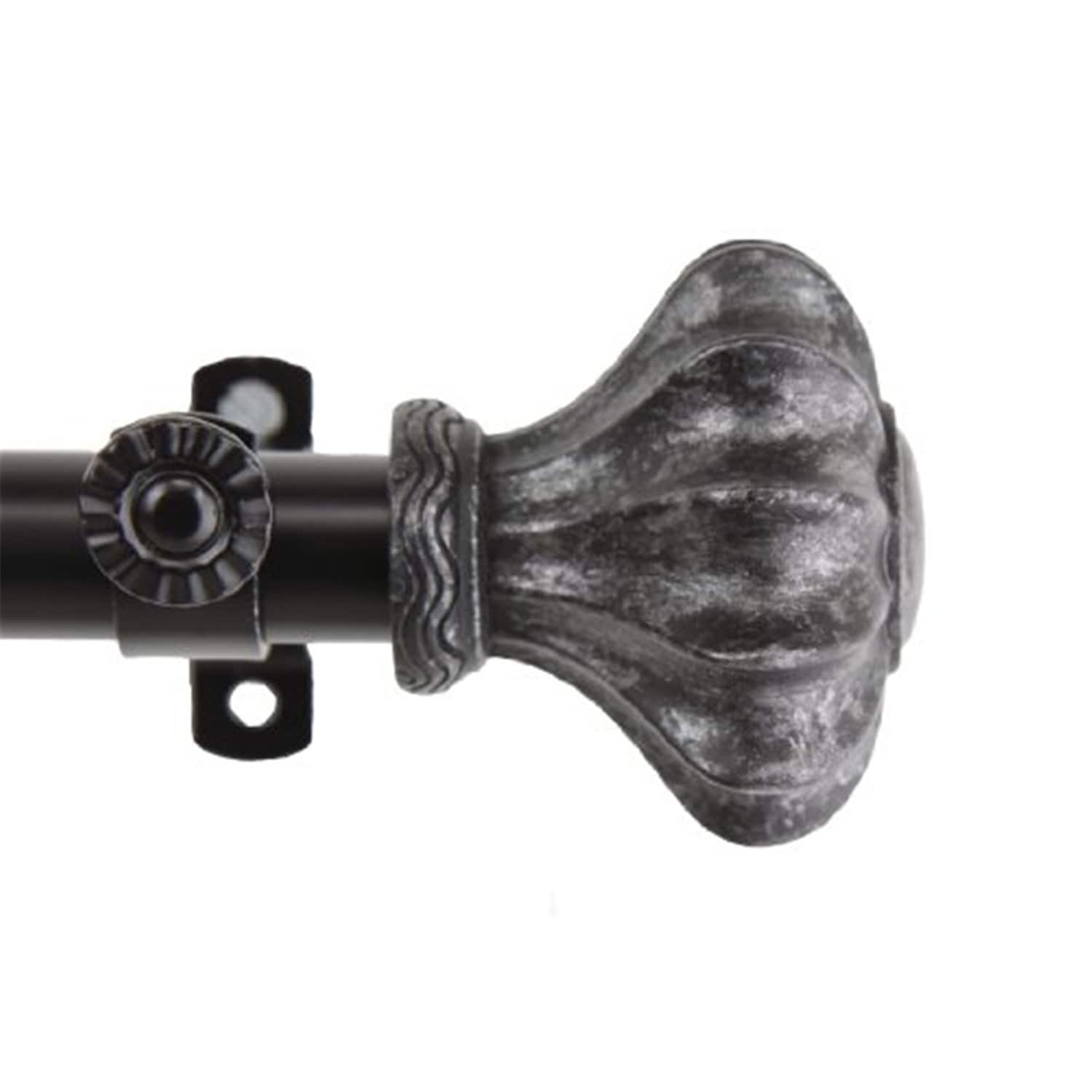 1 Inch Curtain Rod - Steel Rod with Resin Finials - Side Mount for Window Draperies - 20