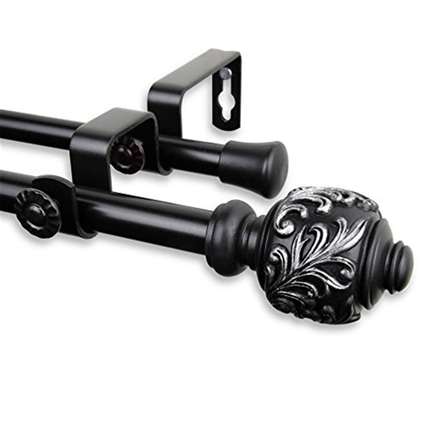 Adjustable Curtain Rods & Hardware Set, Telescoping Design 20-72 Inch, Stylish Finials, Black - M