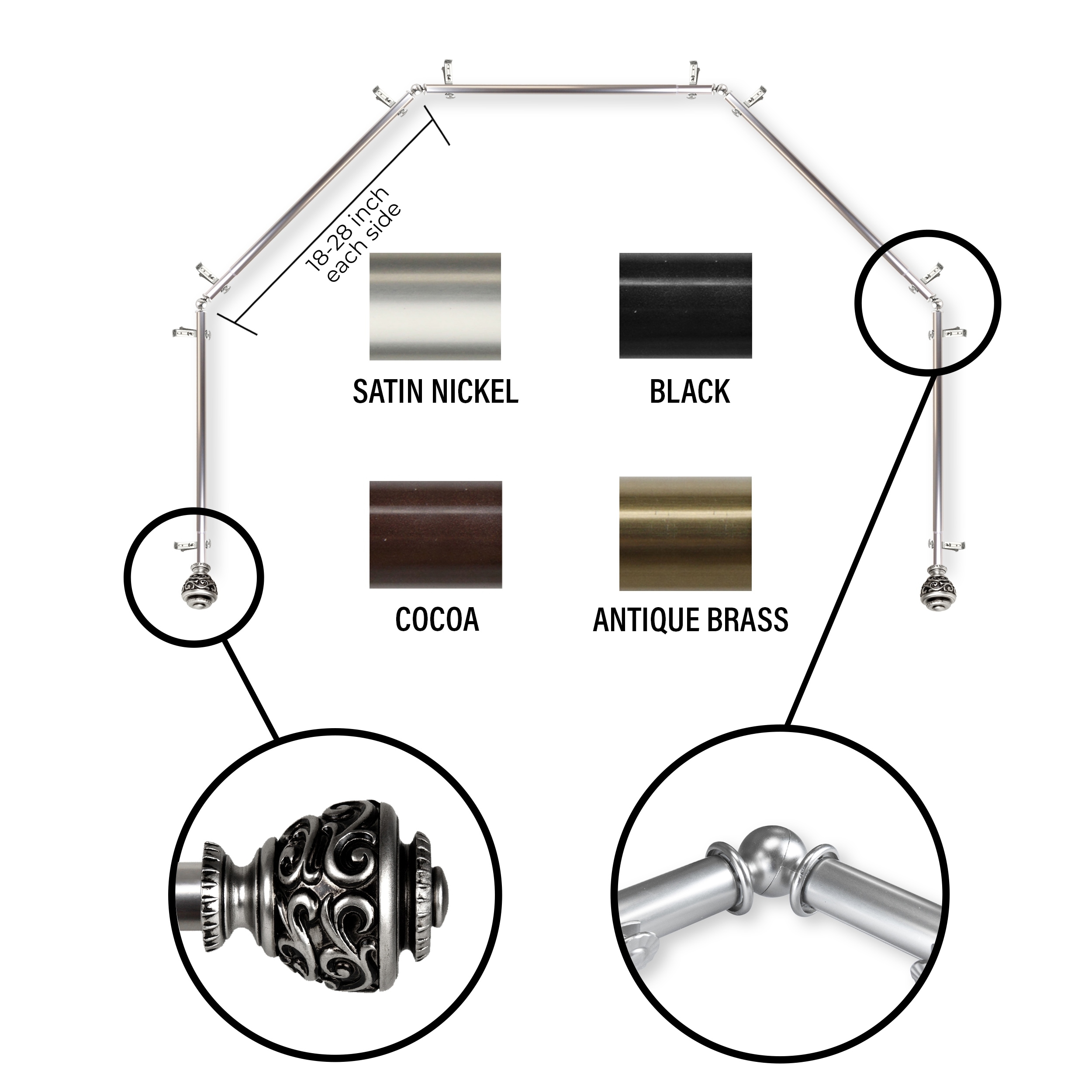 InStyleDesign 13/16" Charlie 5-Sided Bay Window Curtain Rod (18-28 inch each side)