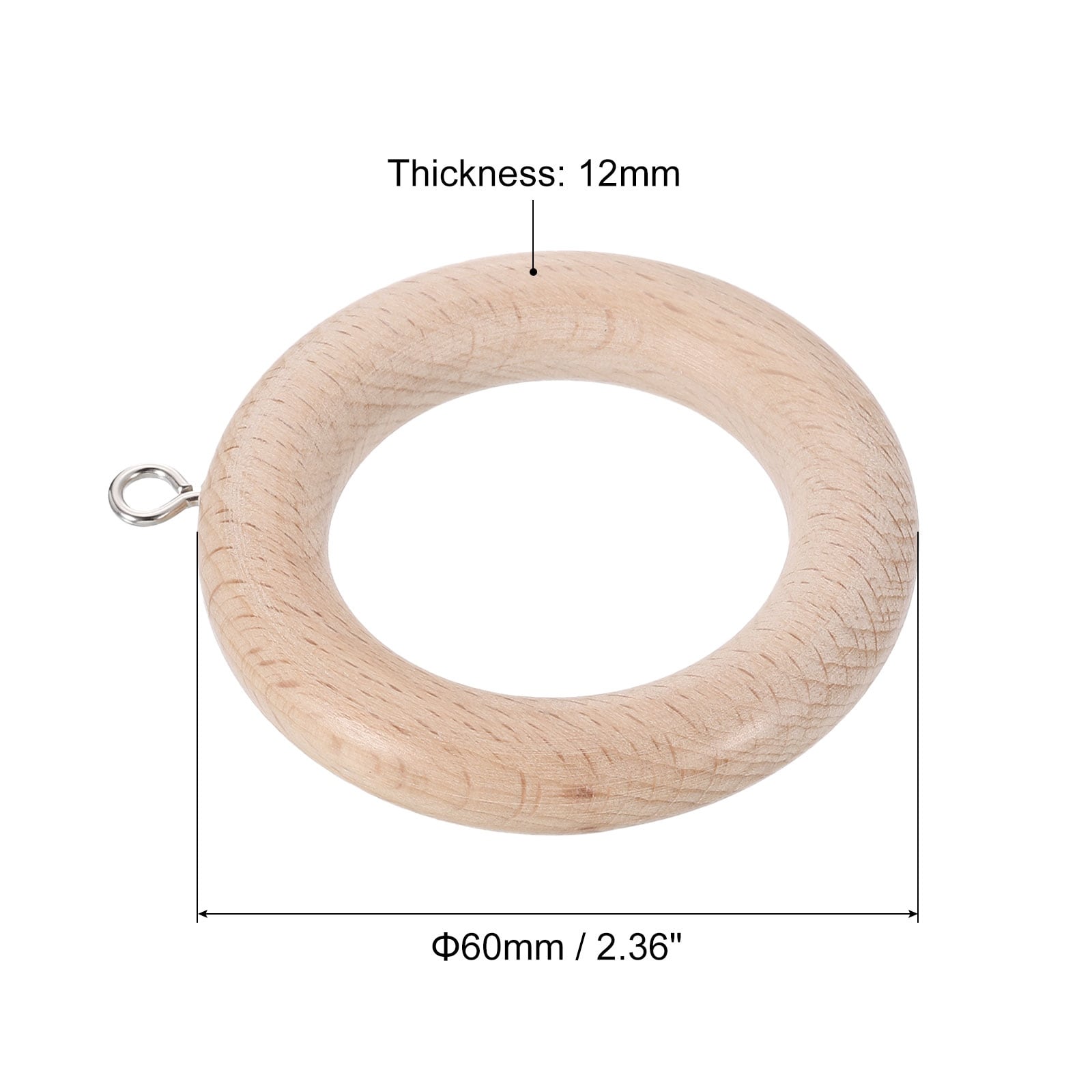Wooden Curtain Drapery Rings, Curtain Wood Ring Hook with Screw Eye for Curtain Drapery Rod