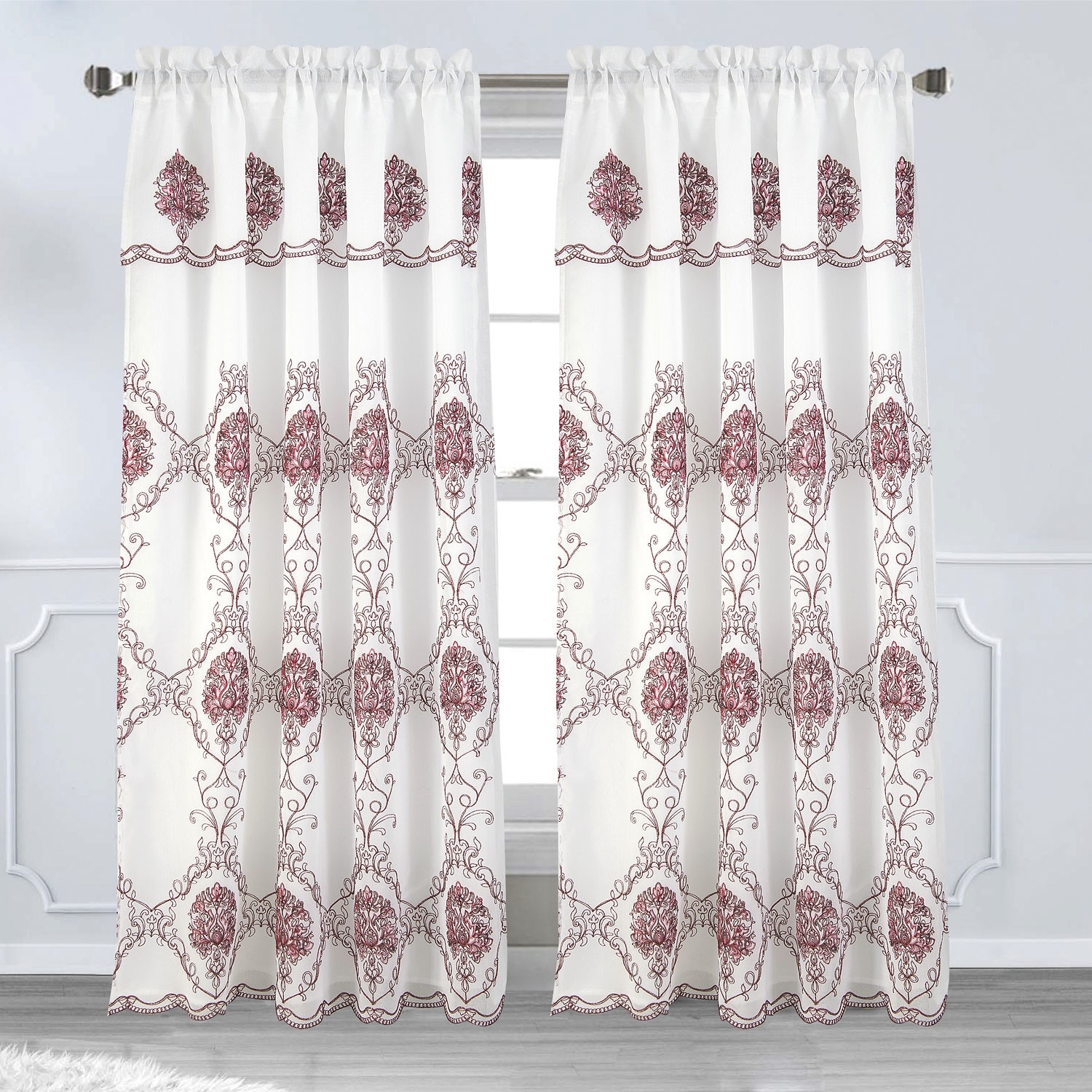 Toulin Floral Embroidery Panel With Valance and Backing, 54x84 Inches
