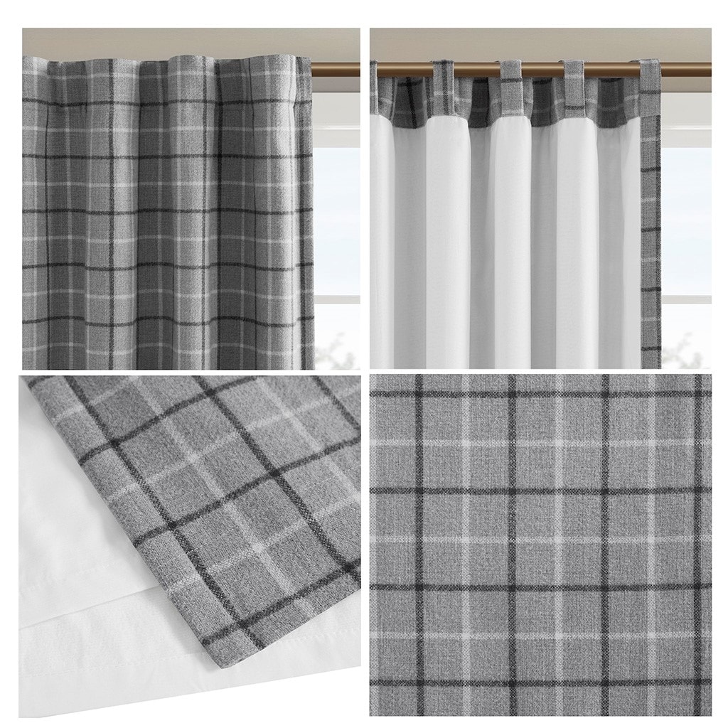 Plaid Faux Leather Tab Top Curtain Panel with Fleece Lining