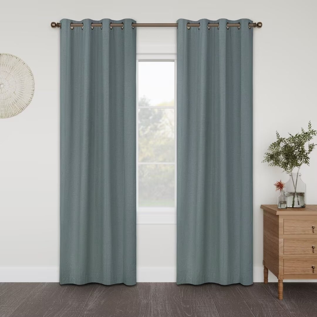 Linen Slub Texture Blackout Grommet Curtain Pair(2 Panels)