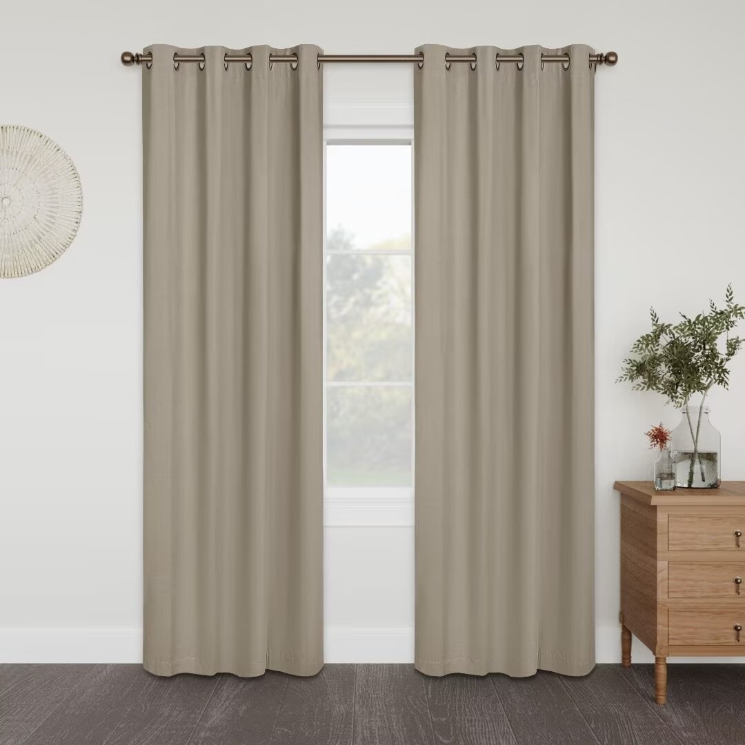 Linen Slub Texture Blackout Grommet Curtain Pair(2 Panels)