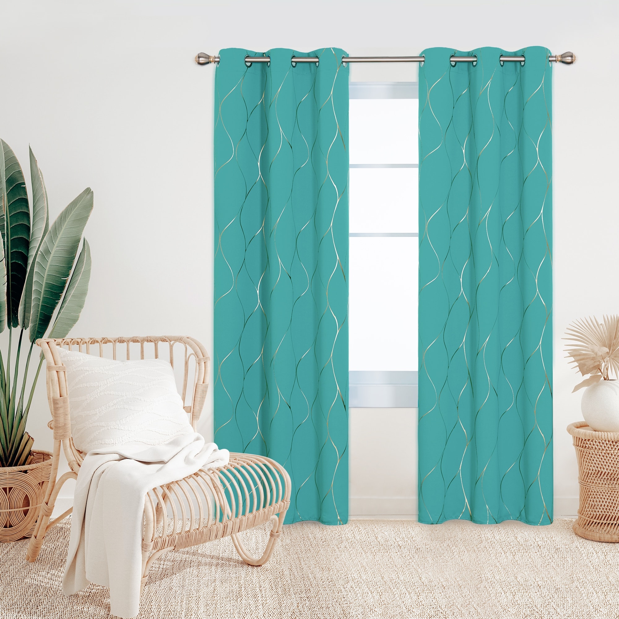 Deconovo Mix & Match Blackout and Silver Print Sheer 4 Piece Curtain Panel Set