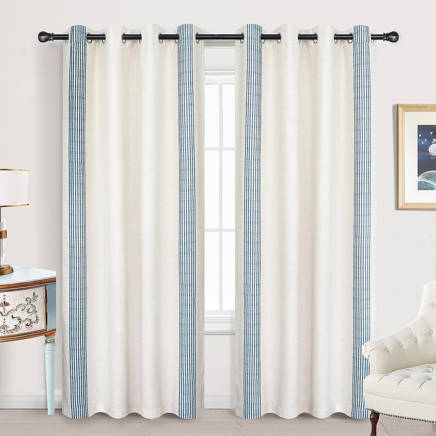DriftAway Cabana Stripe Linen Textured Farmhouse Blackout Window Curtains - 52" Width X 84" Length