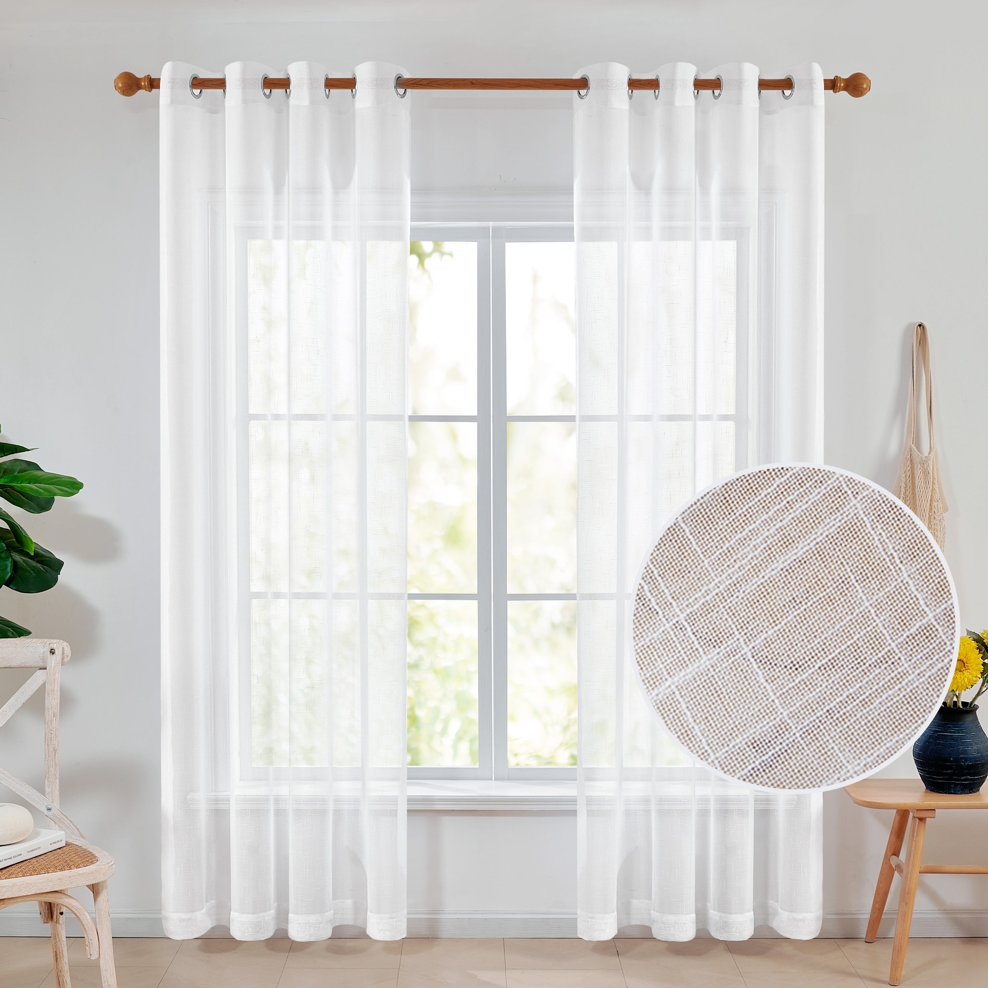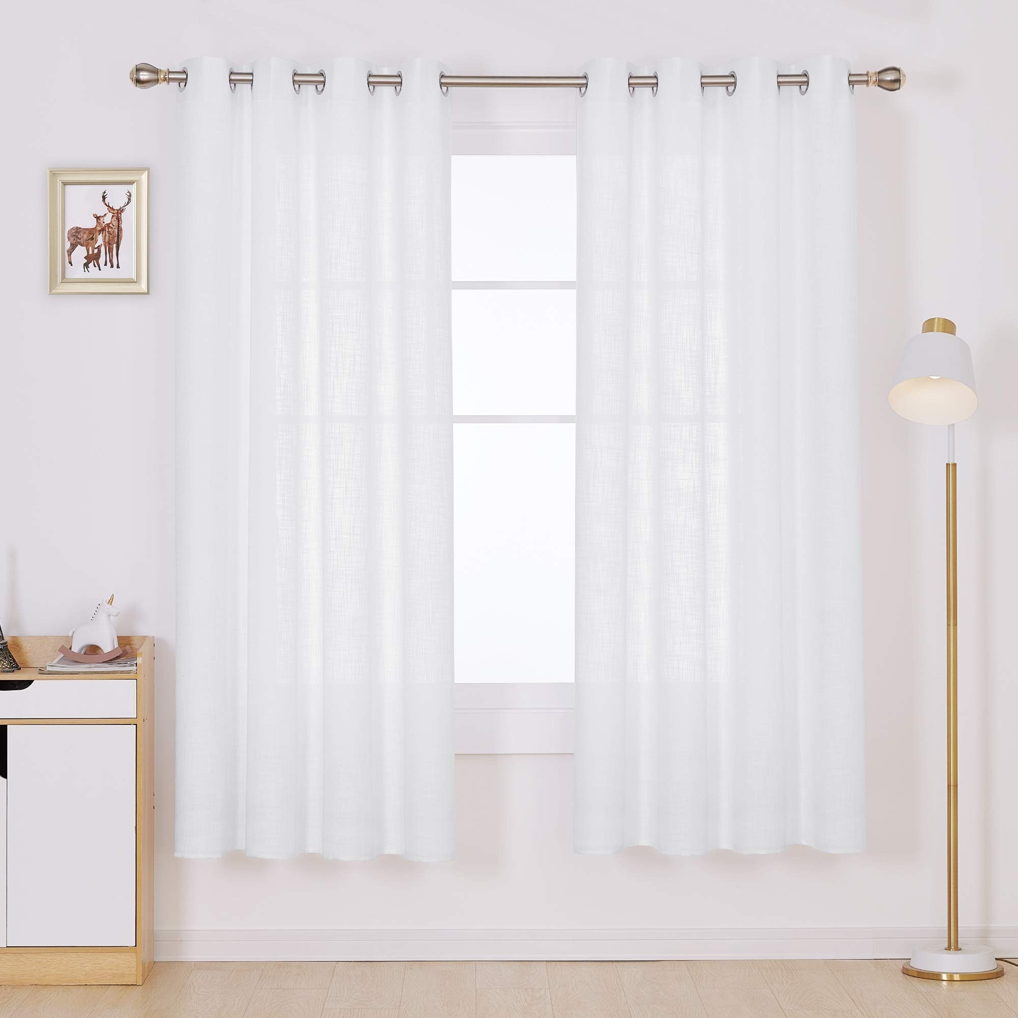 Deconovo White Faux Linen Light-filtering Sheer Curtains, 2 Panels