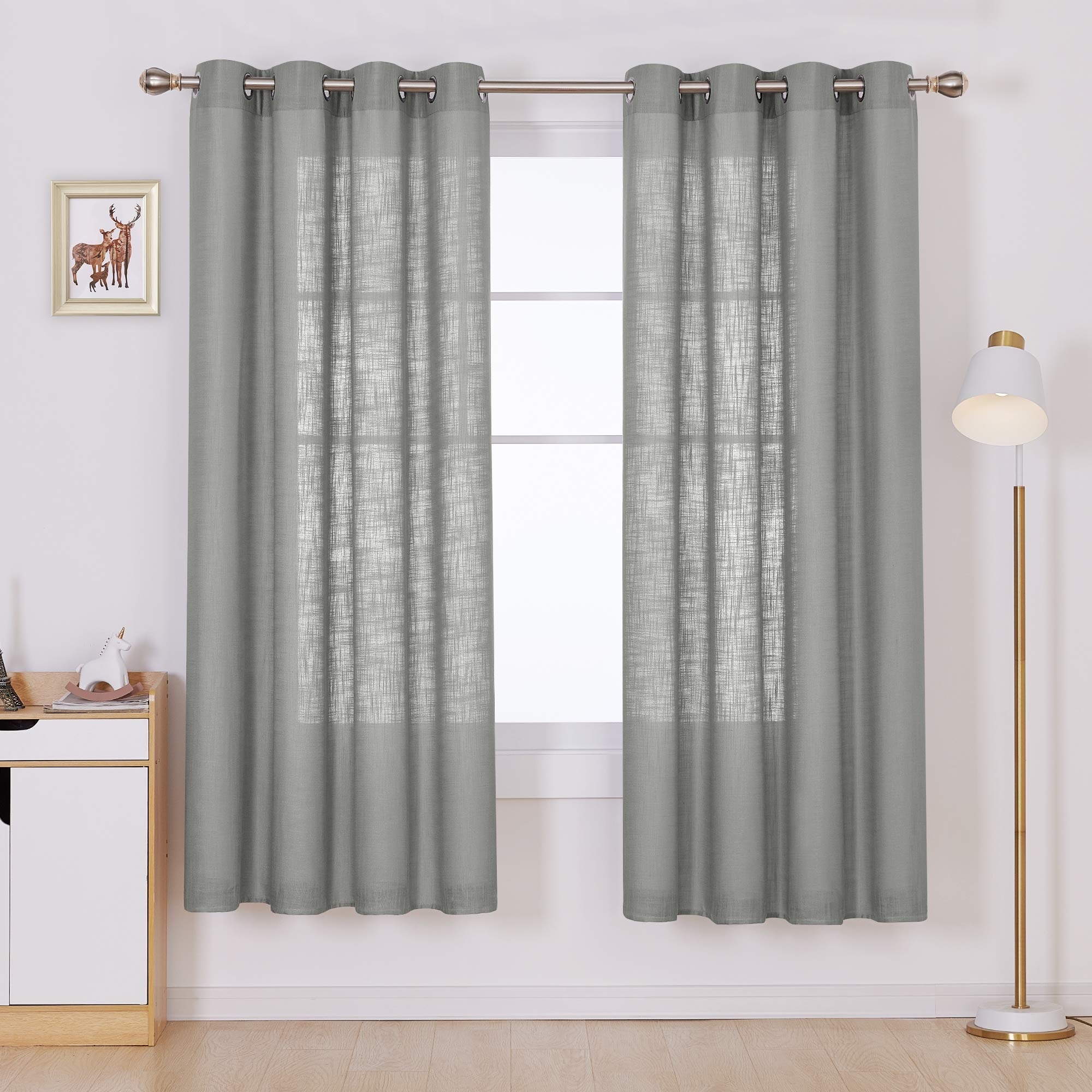 Faux Linen Grommet Semi-Sheer Curtain 2 Panels