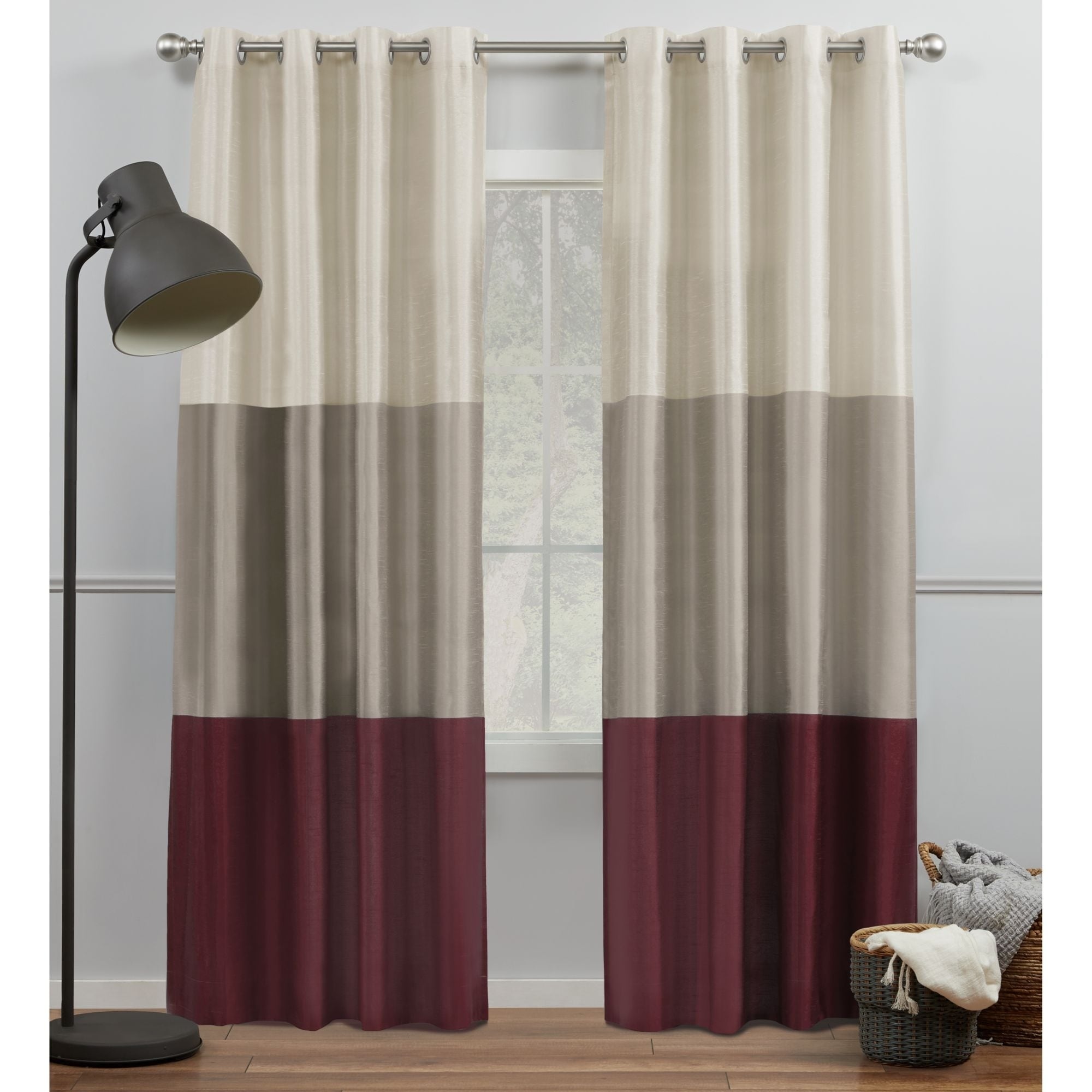 Porch & Den Birdsview Striped Faux Silk Grommet Top Curtain Panel Pair