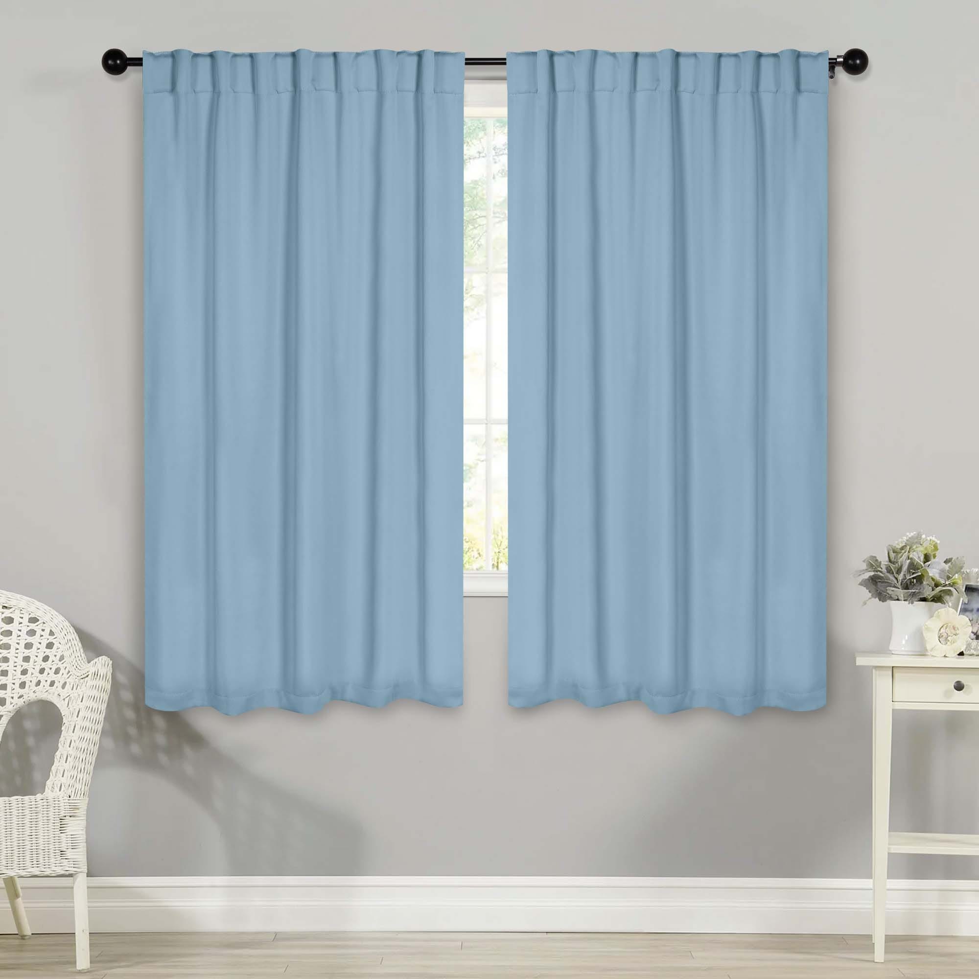 Superior Solid Machine Washable Room Darkening Blackout Curtains with Back Tabs, Set of 2