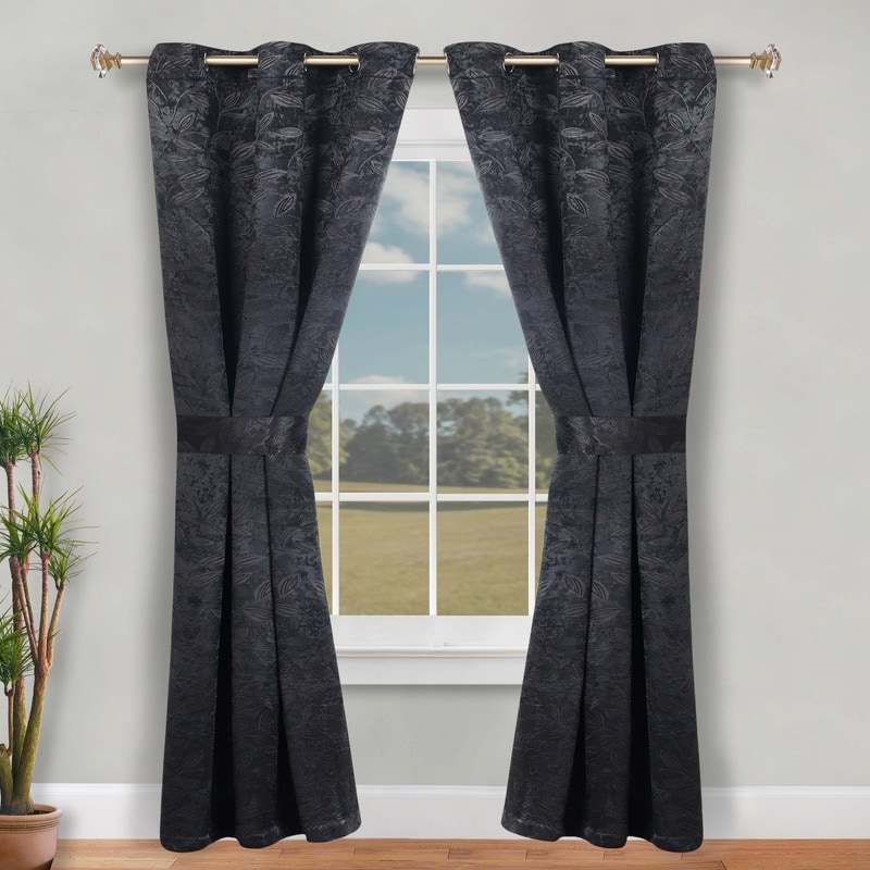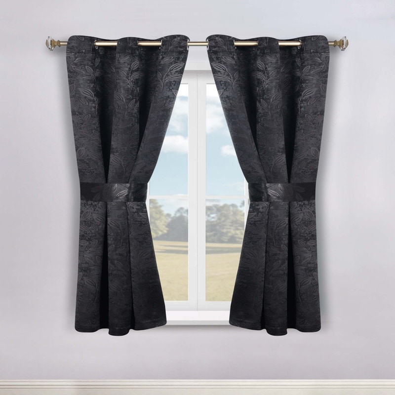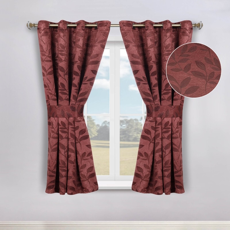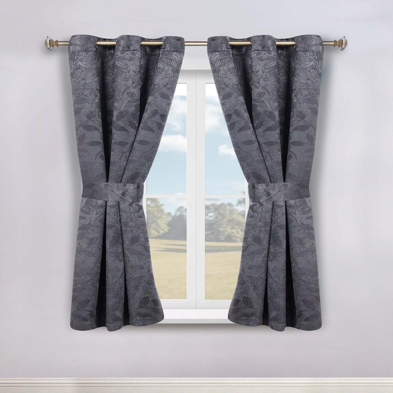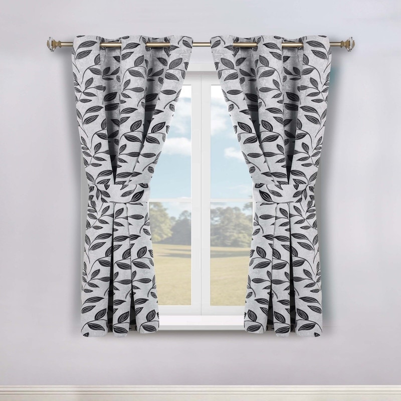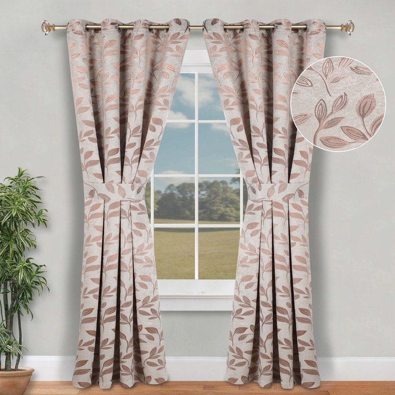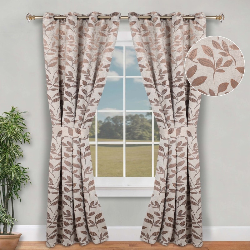 Superior Leaves Machine Washable Room Darkening Grommet With Ties Blackout Curtains, Set of 2