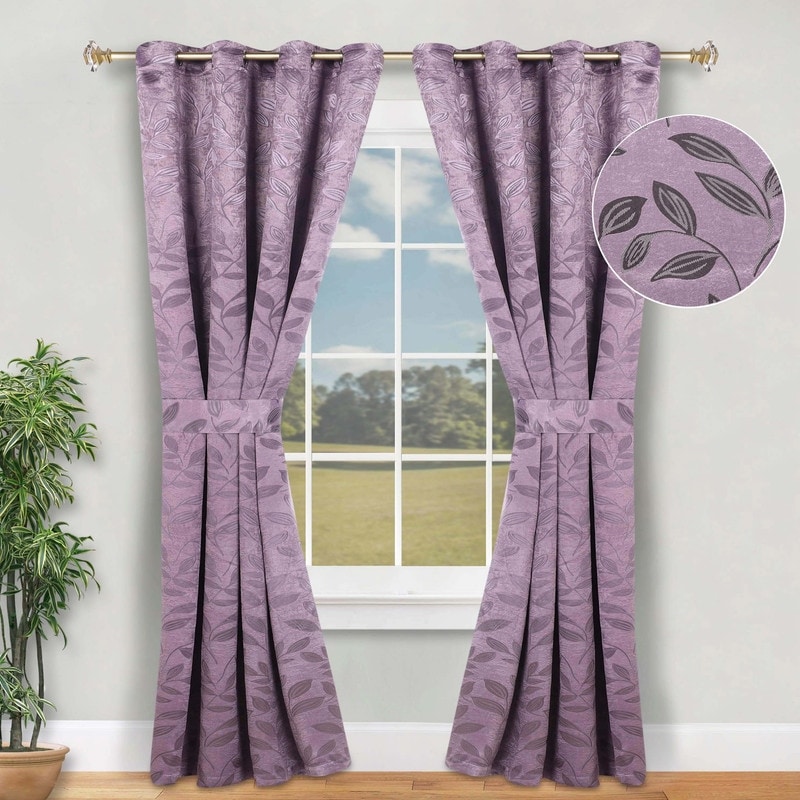 Superior Leaves Machine Washable Room Darkening Grommet With Ties Blackout Curtains, Set of 2