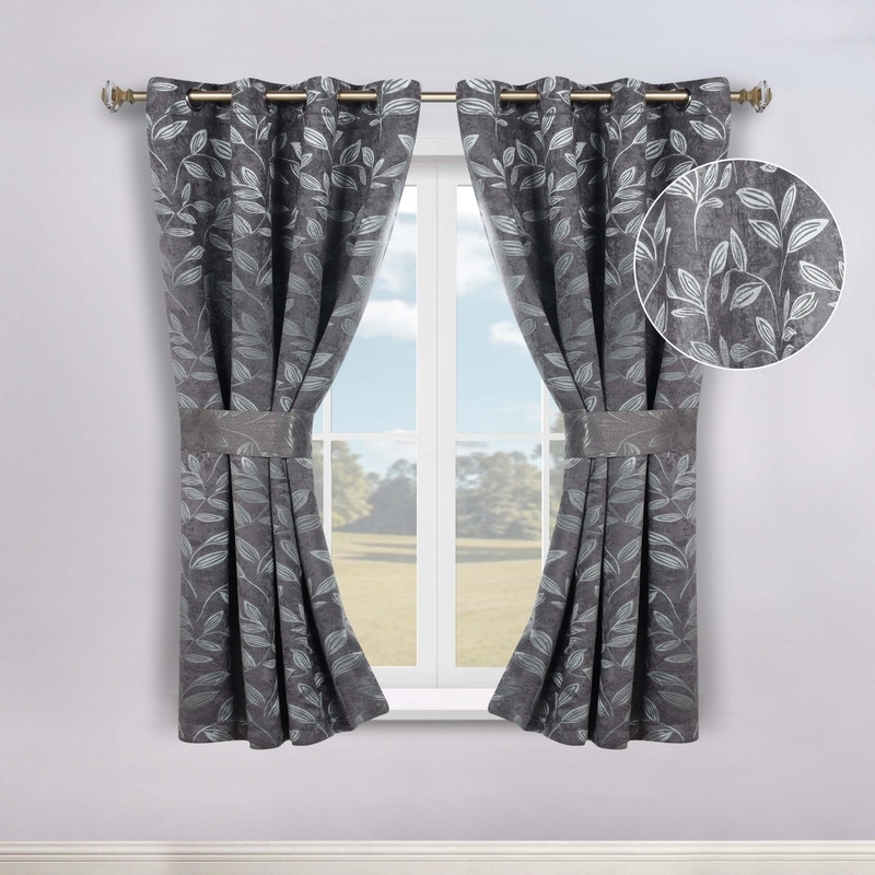 Superior Leaves Machine Washable Room Darkening Grommet With Ties Blackout Curtains, Set of 2