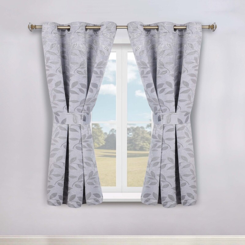 Superior Leaves Machine Washable Room Darkening Grommet With Ties Blackout Curtains, Set of 2