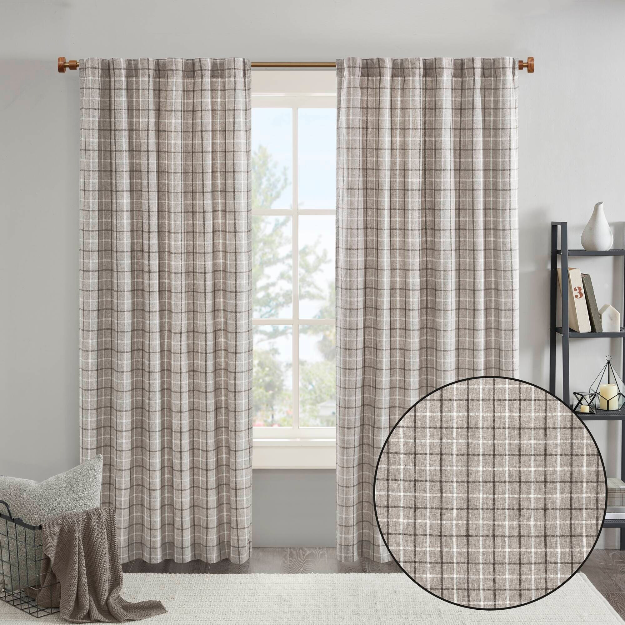 1 PCS Plaid Rod Pocket and Back Tab Curtain Panel with Fleece Lining