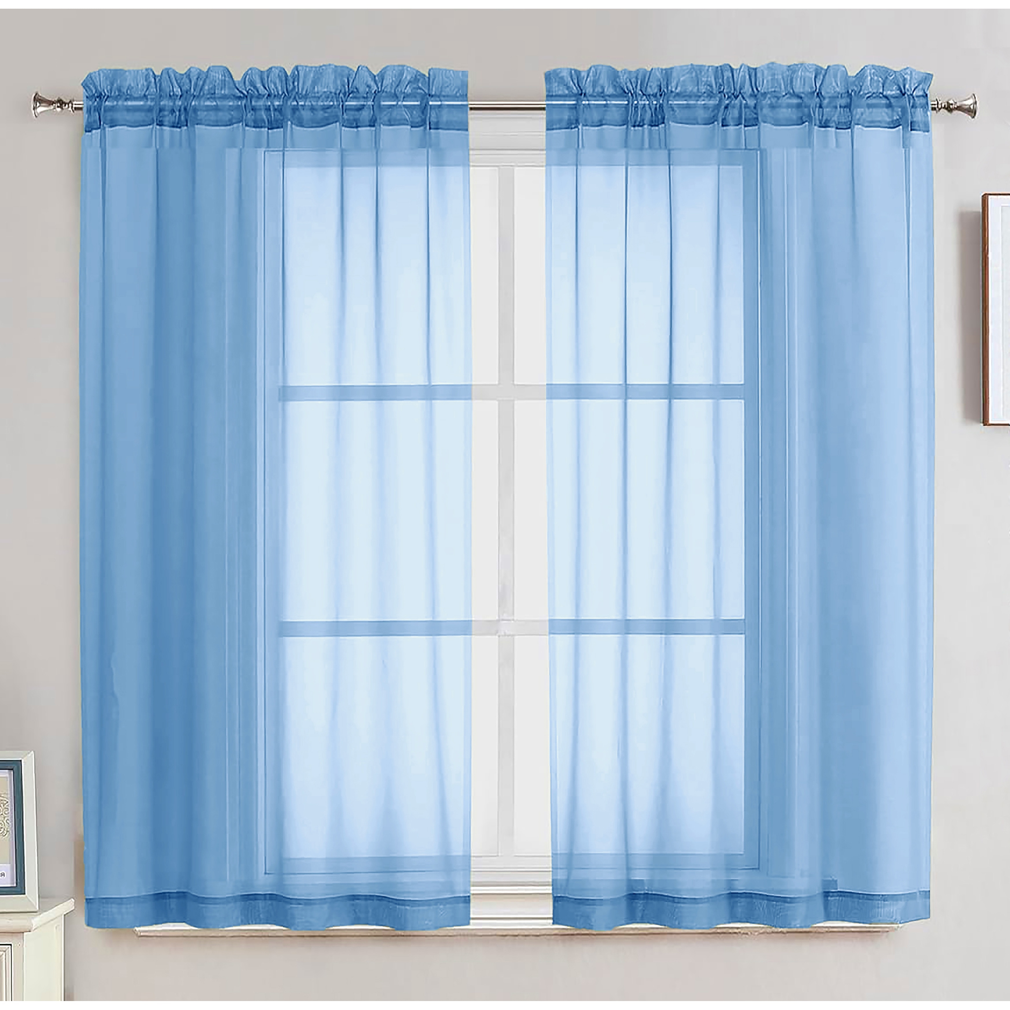 Light Blue Sheer Window Rod Pocket Curtain Set - 63" Inches Long (2 Panels) - 55" x 63"