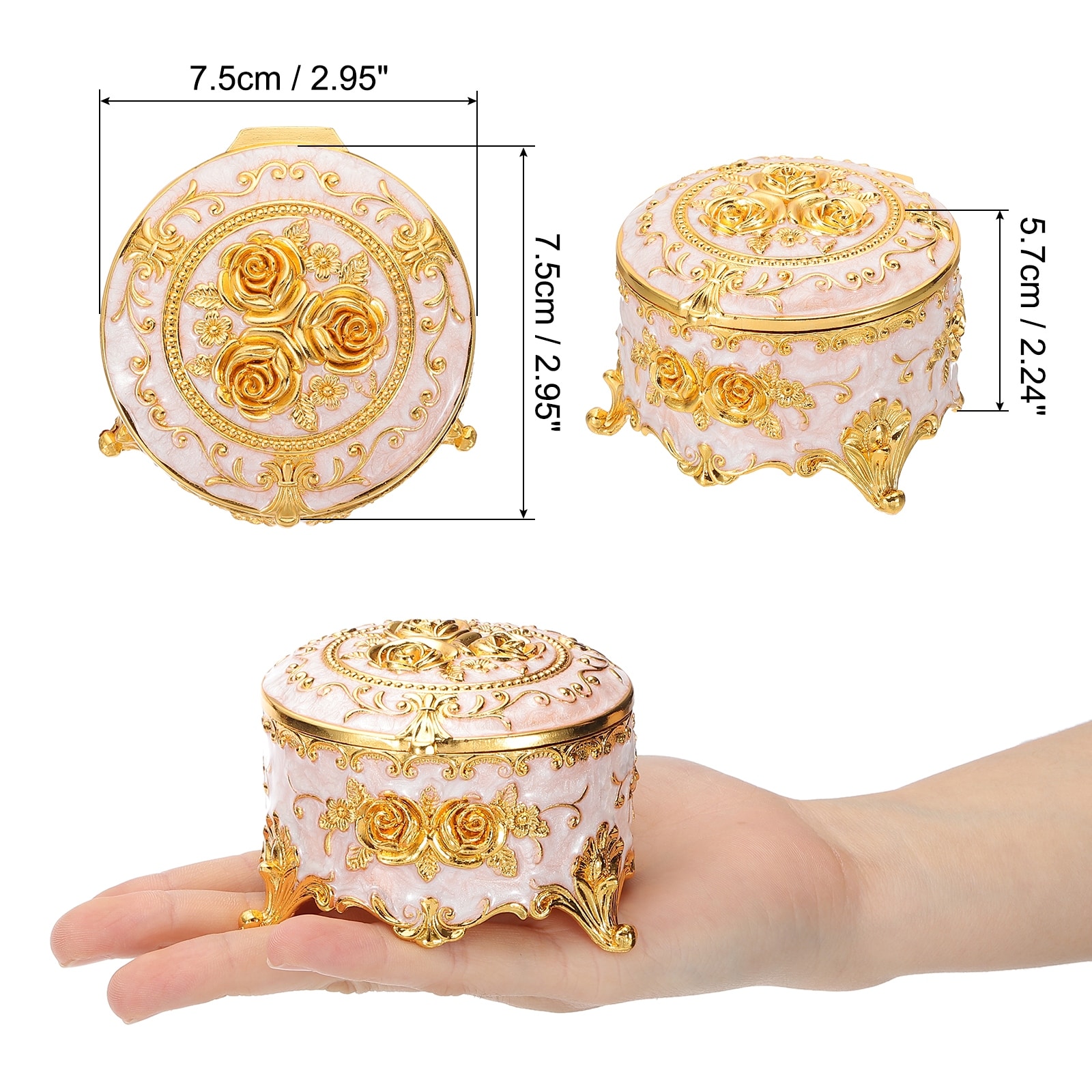 Vintage Metal Jewelry Box, Round Trinket Organizer Box Jewelry Storage Box for Ring Earrings Necklace