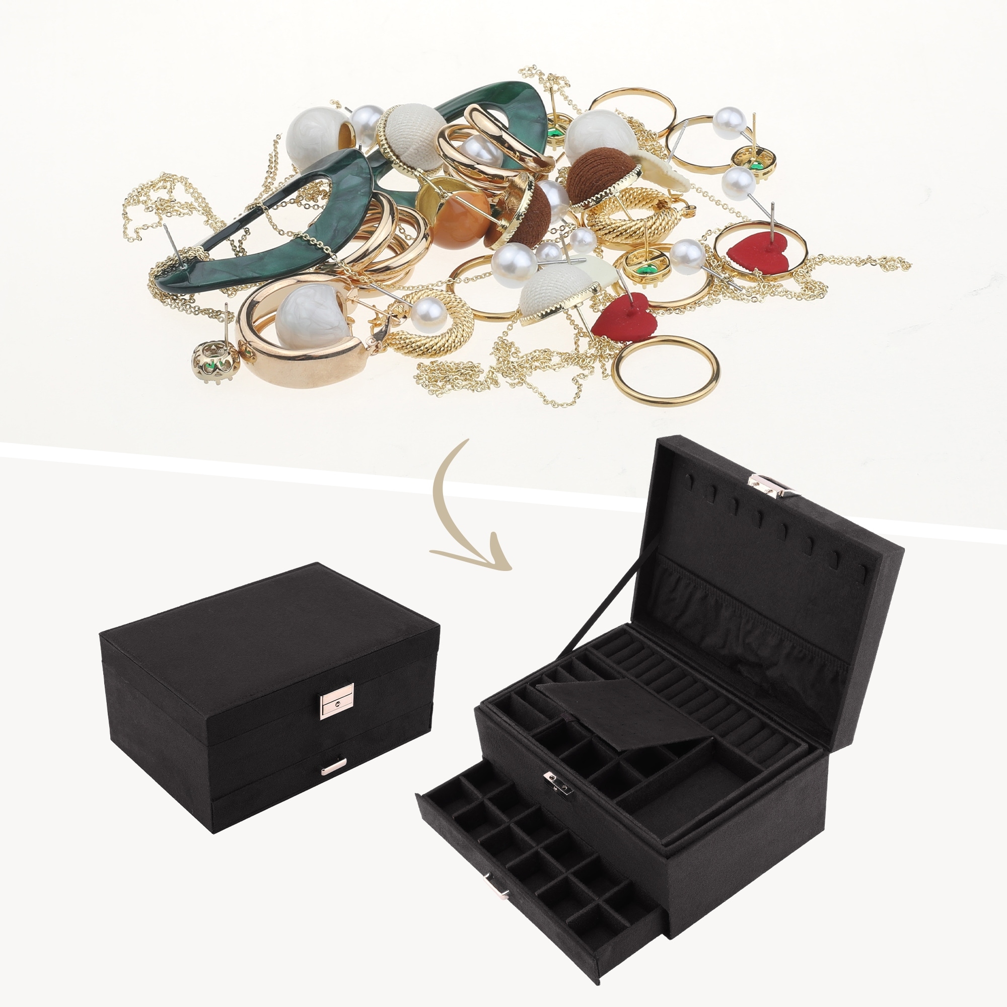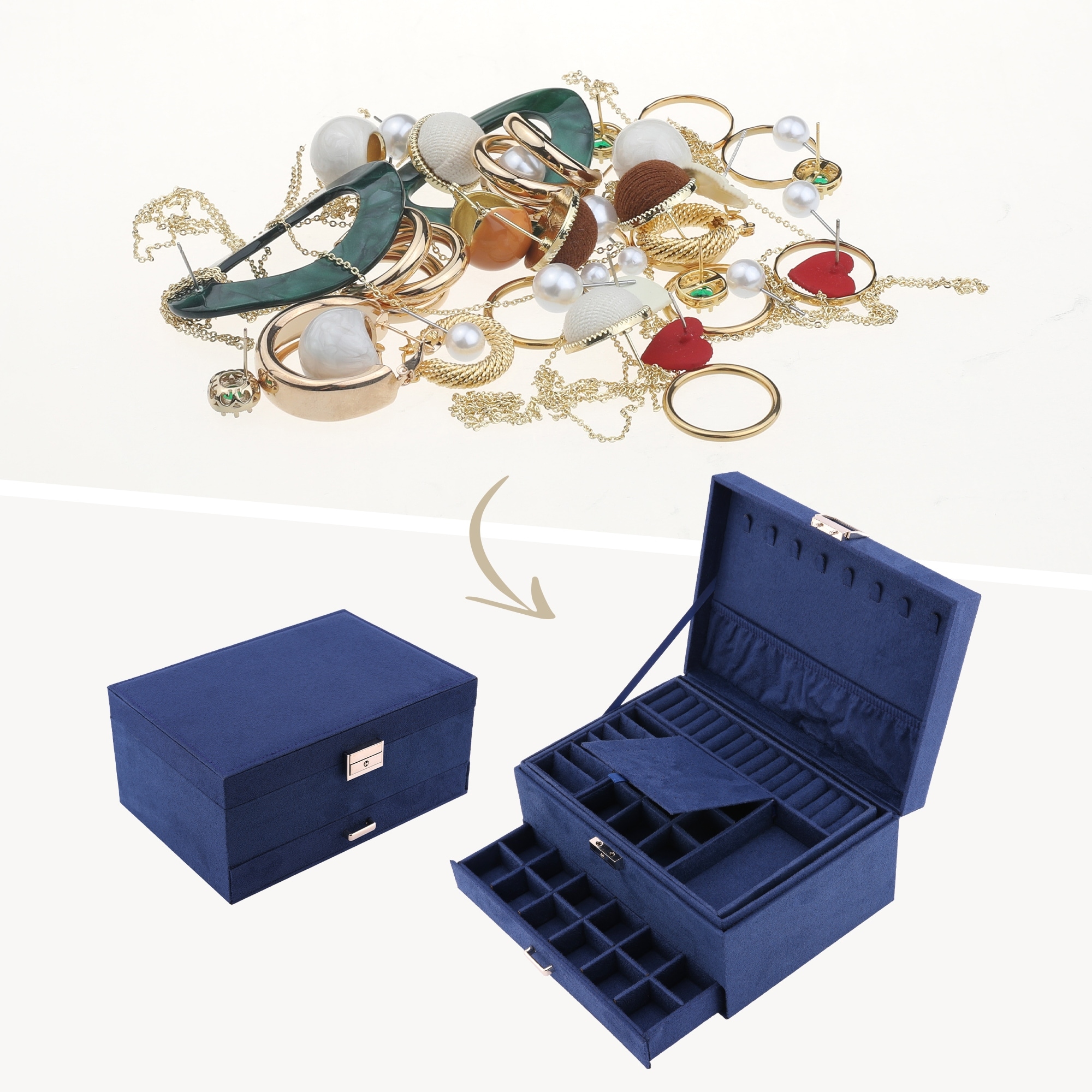 3 Layers Jewelry Box, Jewelry Organizer Case Storage Display Holder with Drawer, Removable Jewelry Tray 10x7x4.5in - 10*7*4.5in