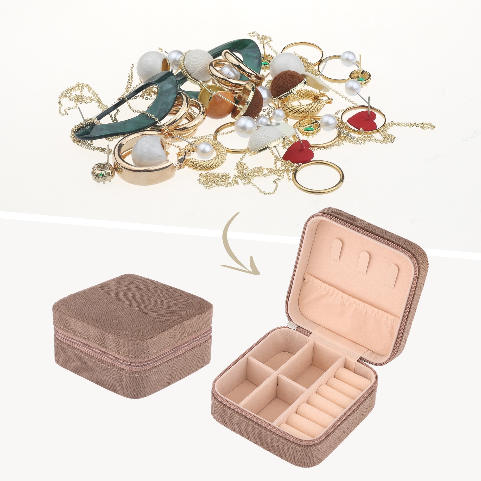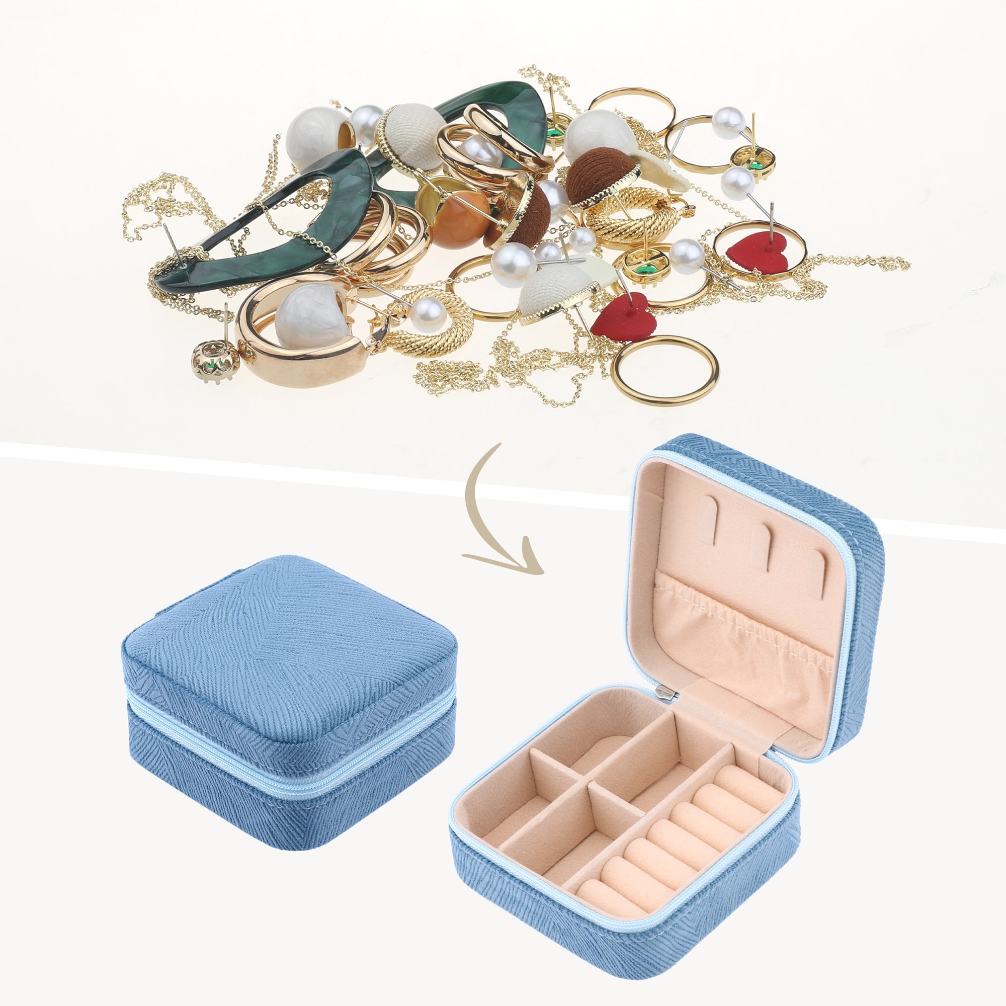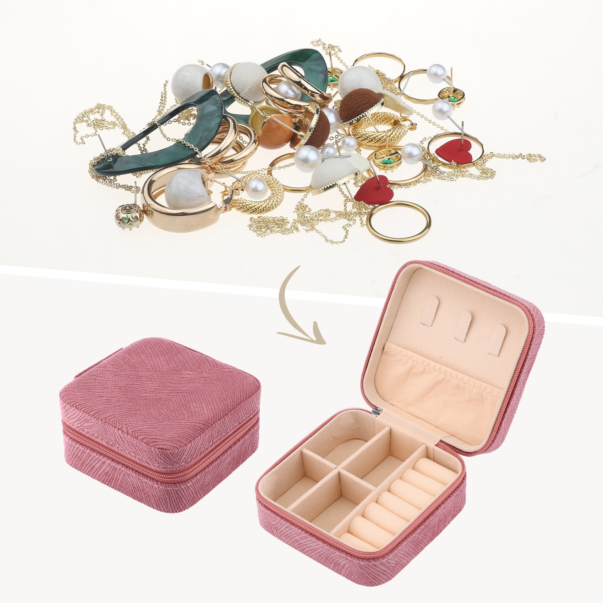 Travel Jewelry Box, Small Portable Velvet Jewelry Storage Display Holder for Earring Necklace Ring 4x4x2in - 4*4*2in