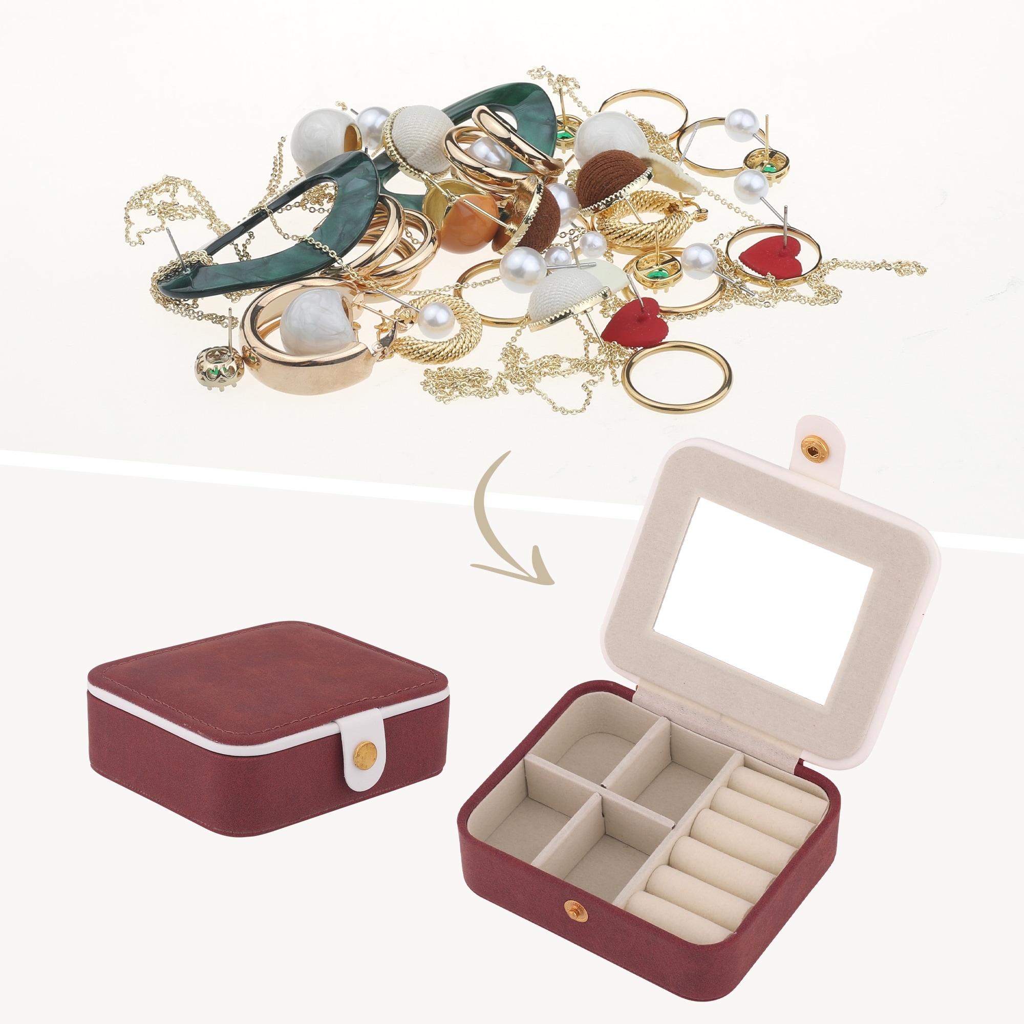 Portable Jewelry Box with Button, Mini Faux Leather Jewelry Organizer Boxes Storage Display Holder, Jewelry Case 4x3.4x1.3in