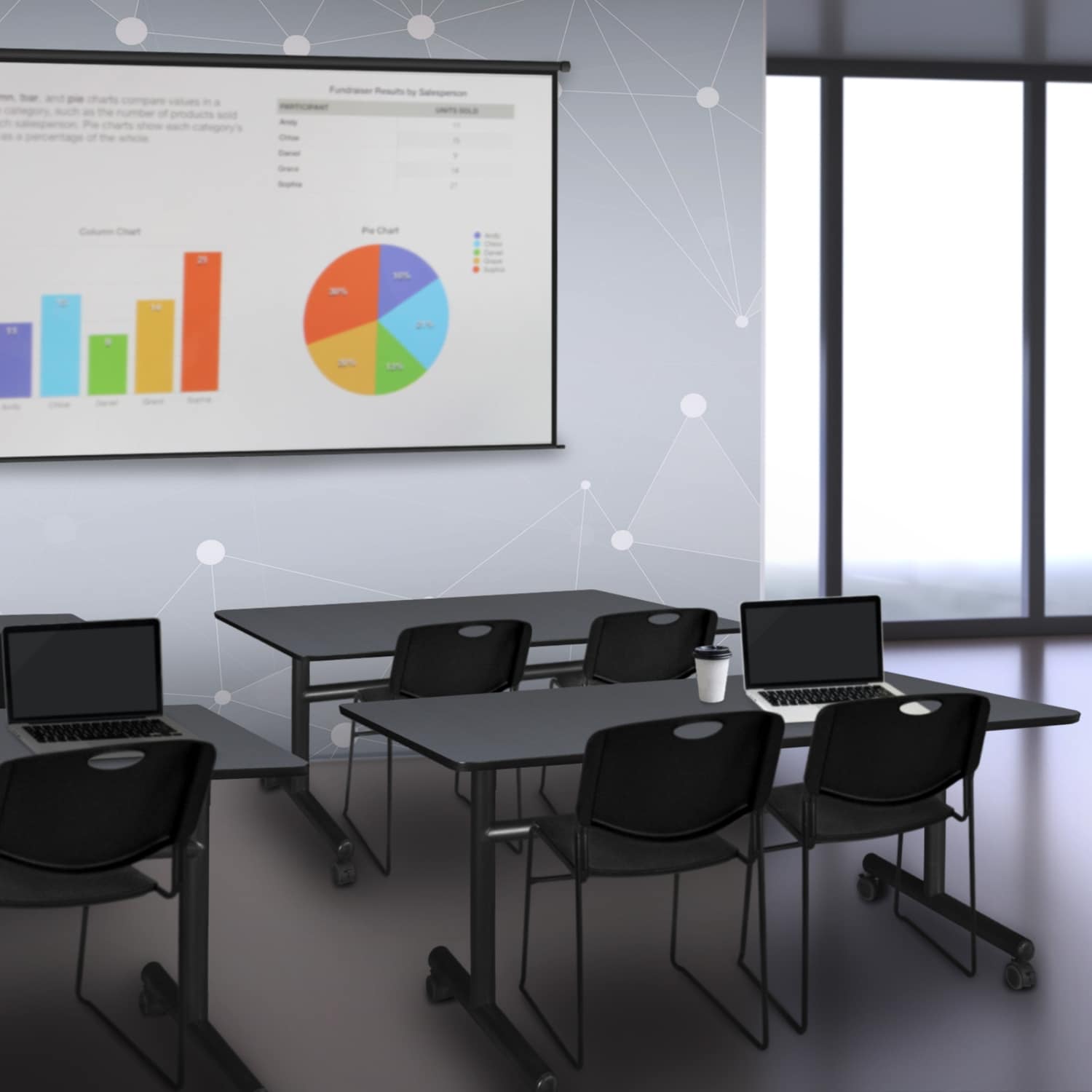 48" x 30" Flip Top Mobile Training Table- Grey and 2 Stack Chairs- Black