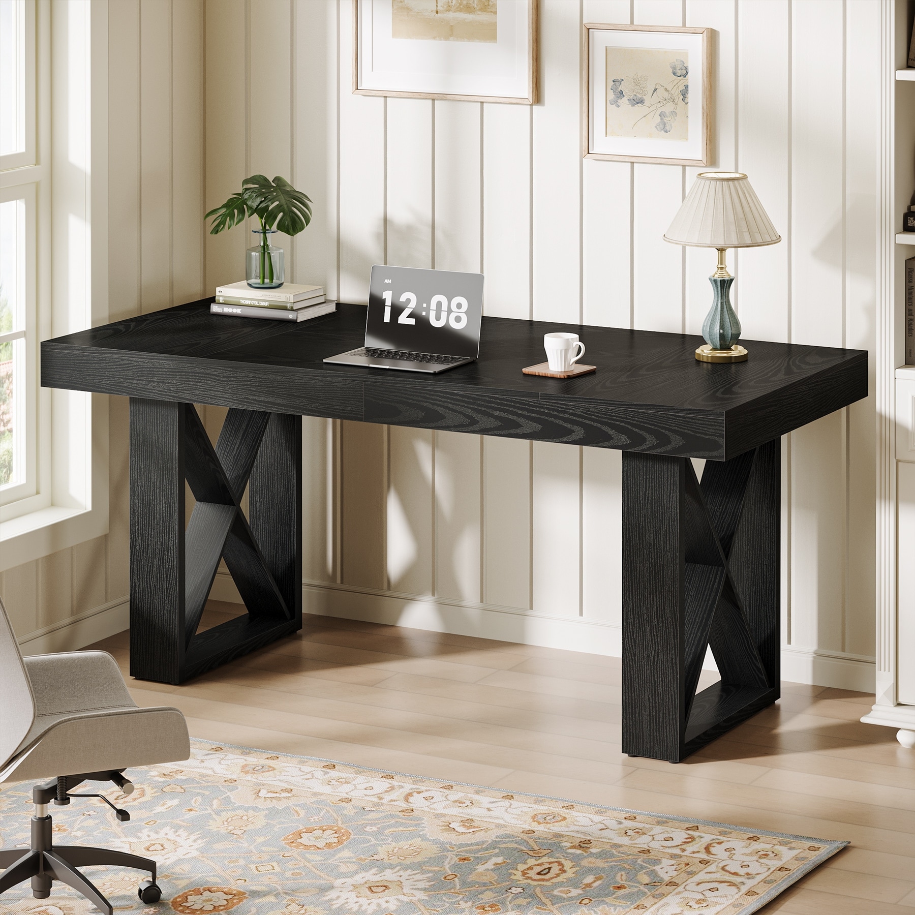 63-Inch Long Computer Desk, Simple Wood Thick Appearance Design