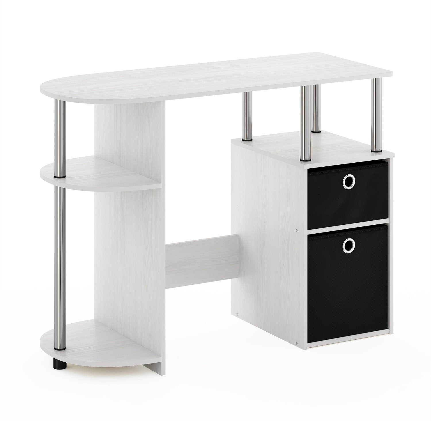 Modern Computer Desk with Storage - Study Writing Desk, White Oak Finish, Stainless Steel Frame