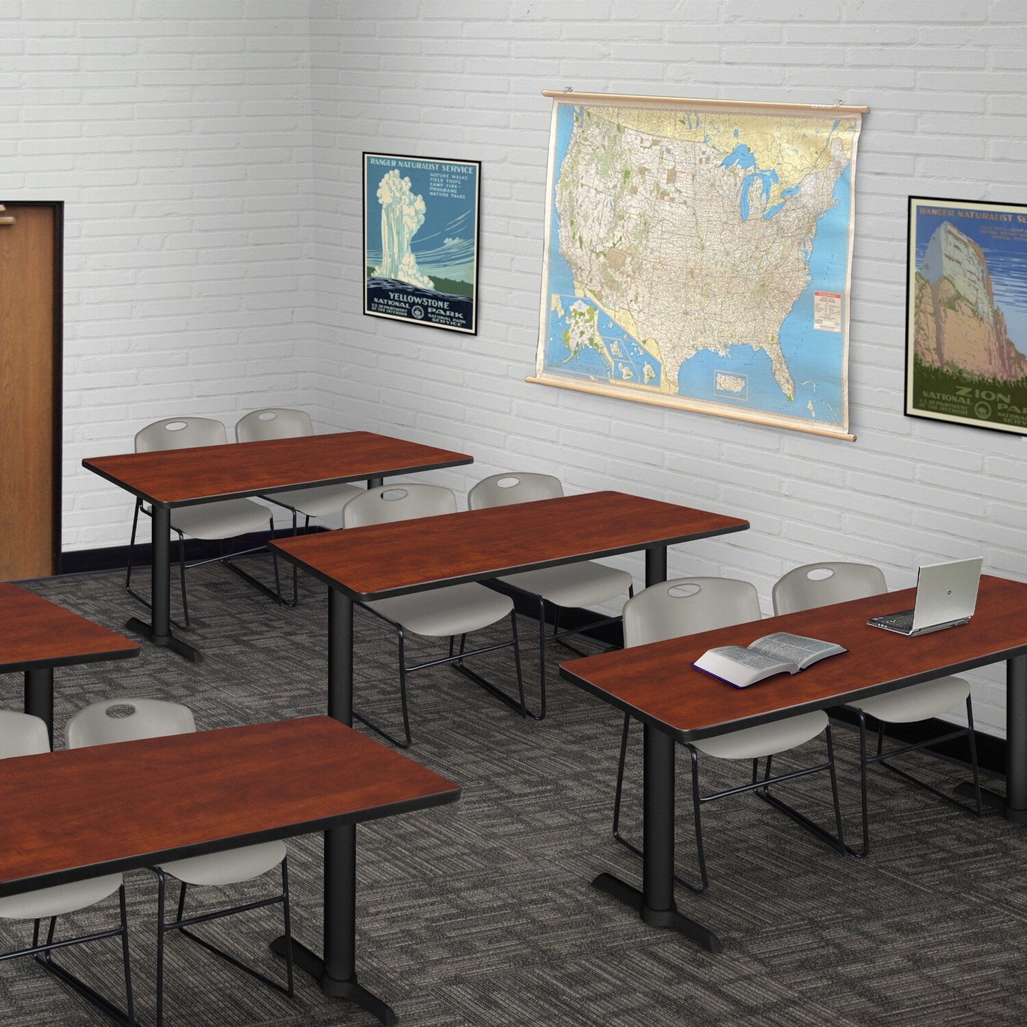 48" x 24" Training Table- Cherry & 2 Stack Chairs- Grey
