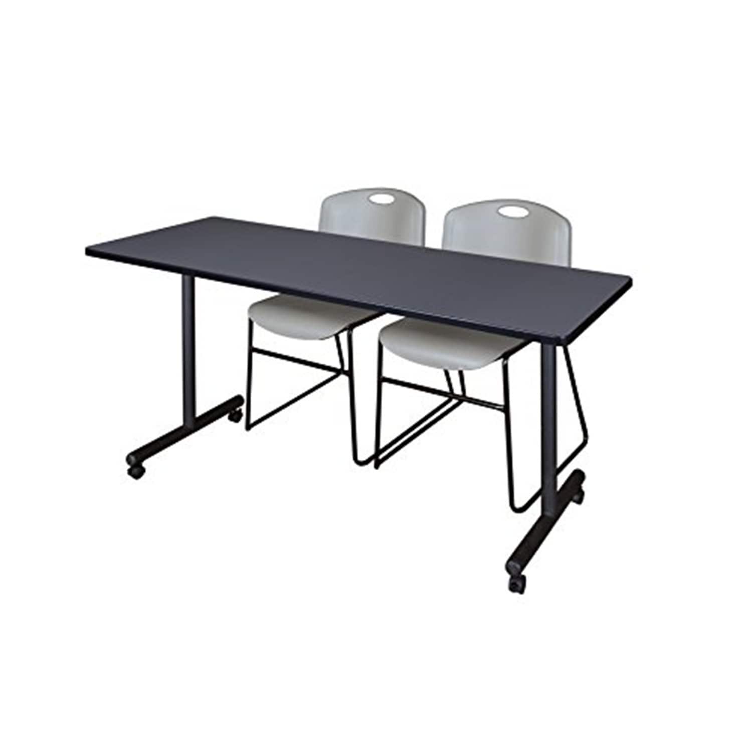 66" x 24" Mobile Training Table- Grey & 2 Stack Chairs- Grey