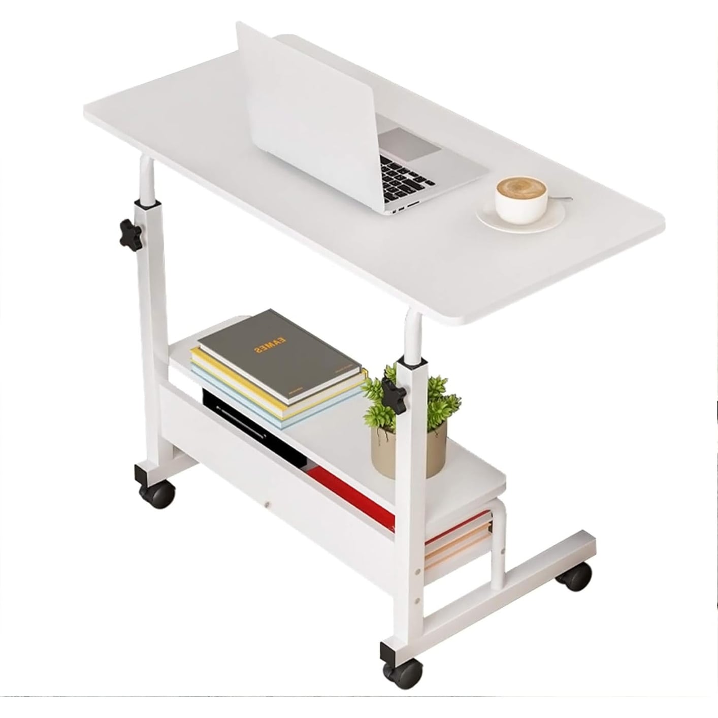 Adjustable Height Laptop Desk with Storage, Portable and Multi-functional, White