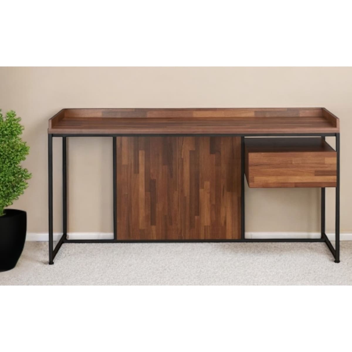 Brown Contemporary 62 Inch Rectangular Computer Desk with Black Metal Base and Large Work Surface