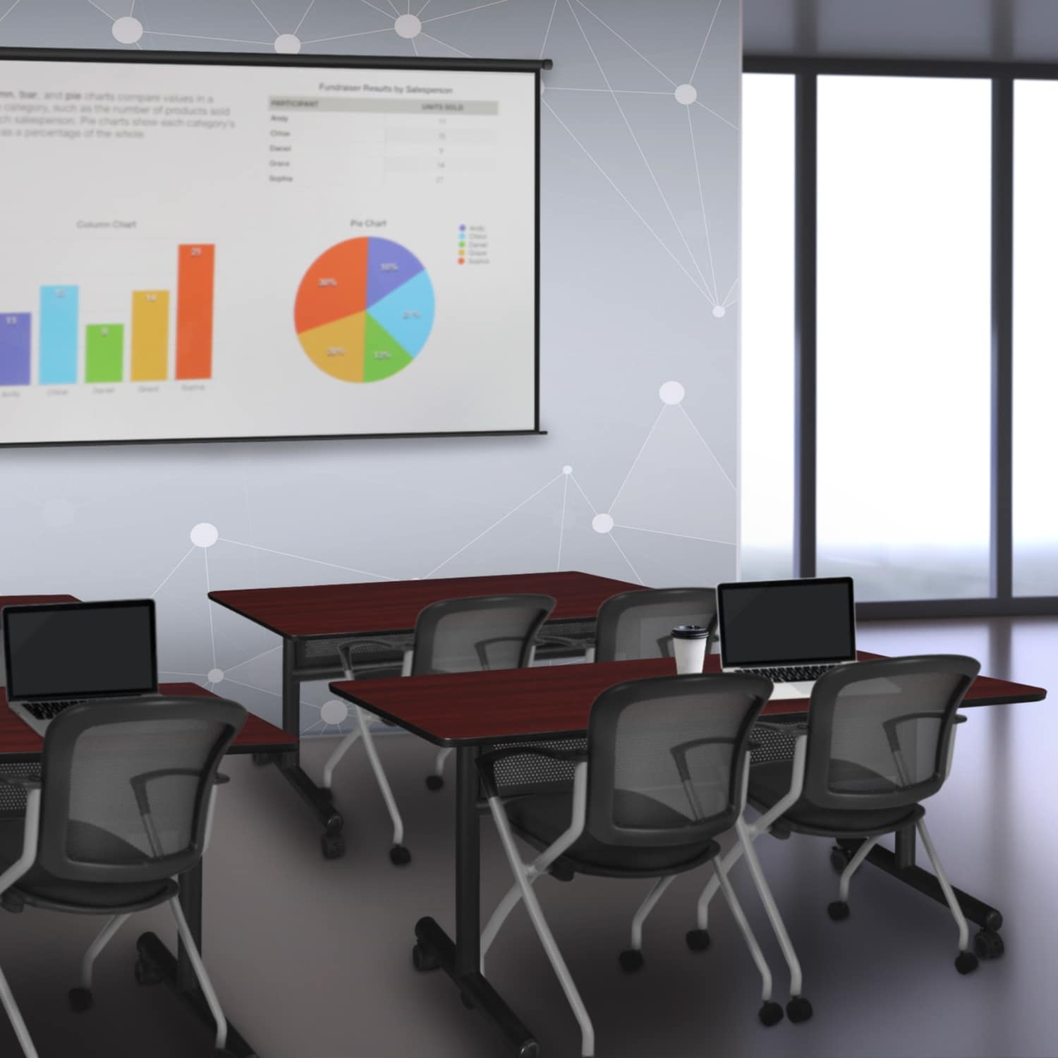 48" x 30" Flip Top Mobile Training Table with Modesty Panel- Mahogany and 2 Nesting Chairs