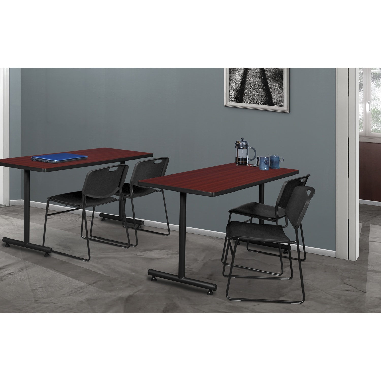 48" x 30" Training Table- Mahogany and 2 Stack Chairs- Black - 48 x 30 inches