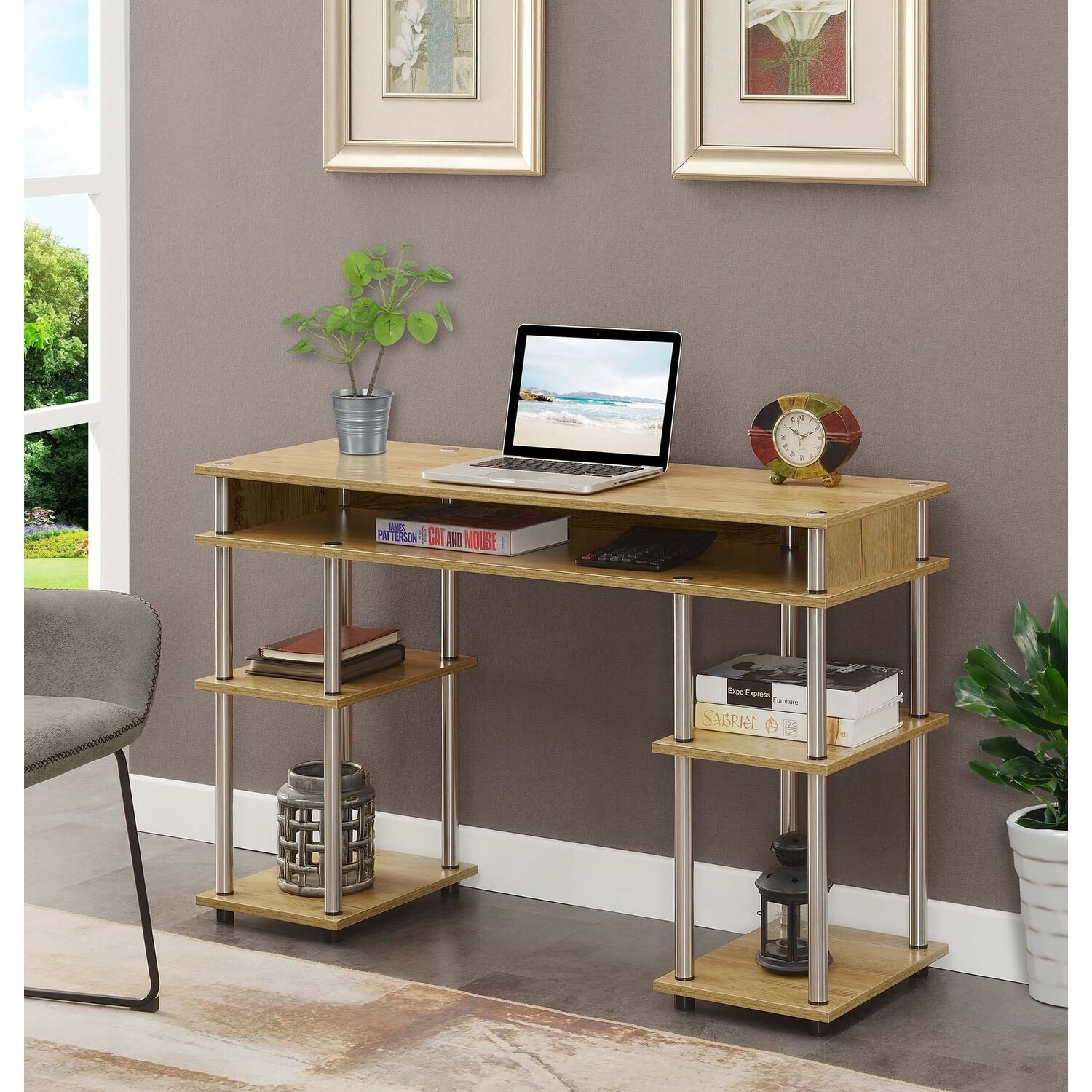 Desk with Shelves - No Tools Home Office Computer Desk, Corner Vanity Nail Table - 47.25" English Oak