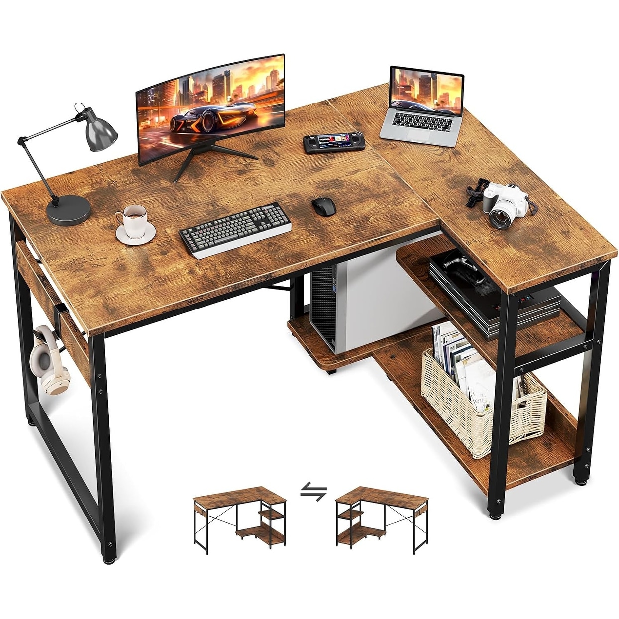 L Shaped Computer Desk, 40 Inch Corner Desk with Storage Shelves & PC Stand, Reversible Gaming Desk for Home Office