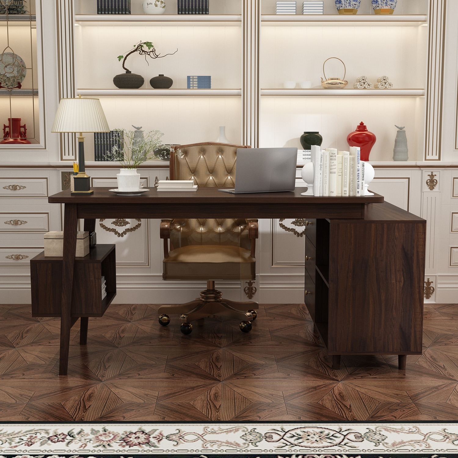 71-Inch Executive Desk with 55-Inch Cabinet, L-Shaped Desk with Storage Shelves
