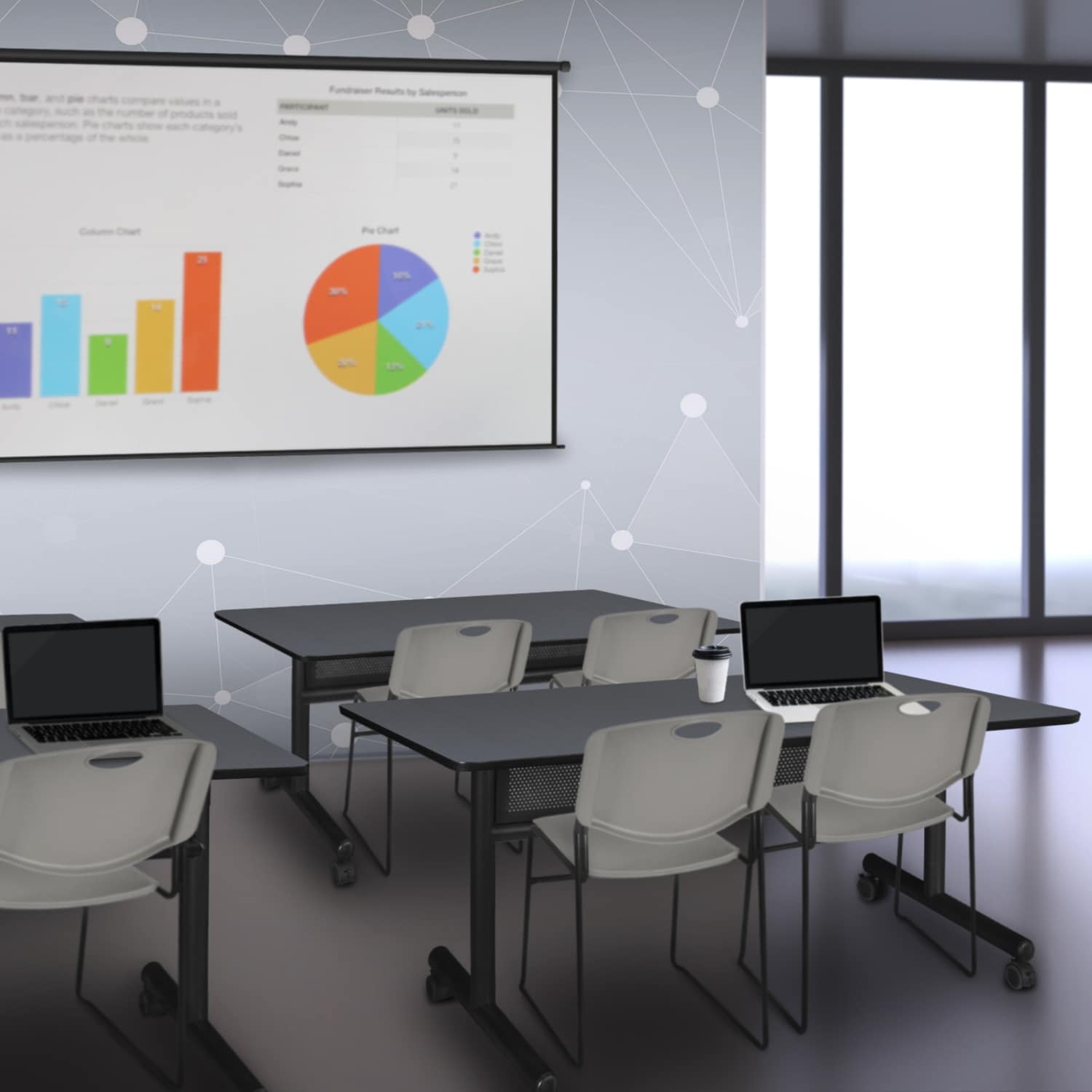 60" x 30" Training Table- Grey and 2 Stack Chairs- Grey - 60" x 30"