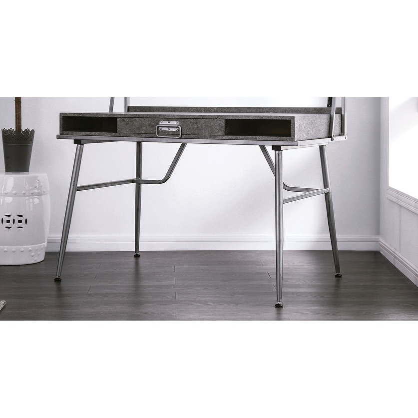 Modern Industrial Computer Desk Usb Port One Drawer And Two Shelves With Metal Legs