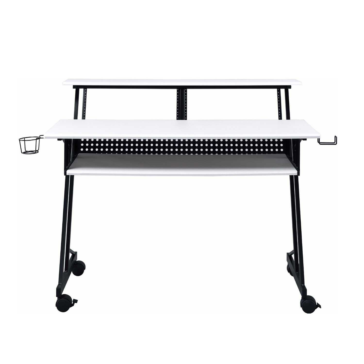 Music Recording Studio Desk with Keyboard Tray, White and Black